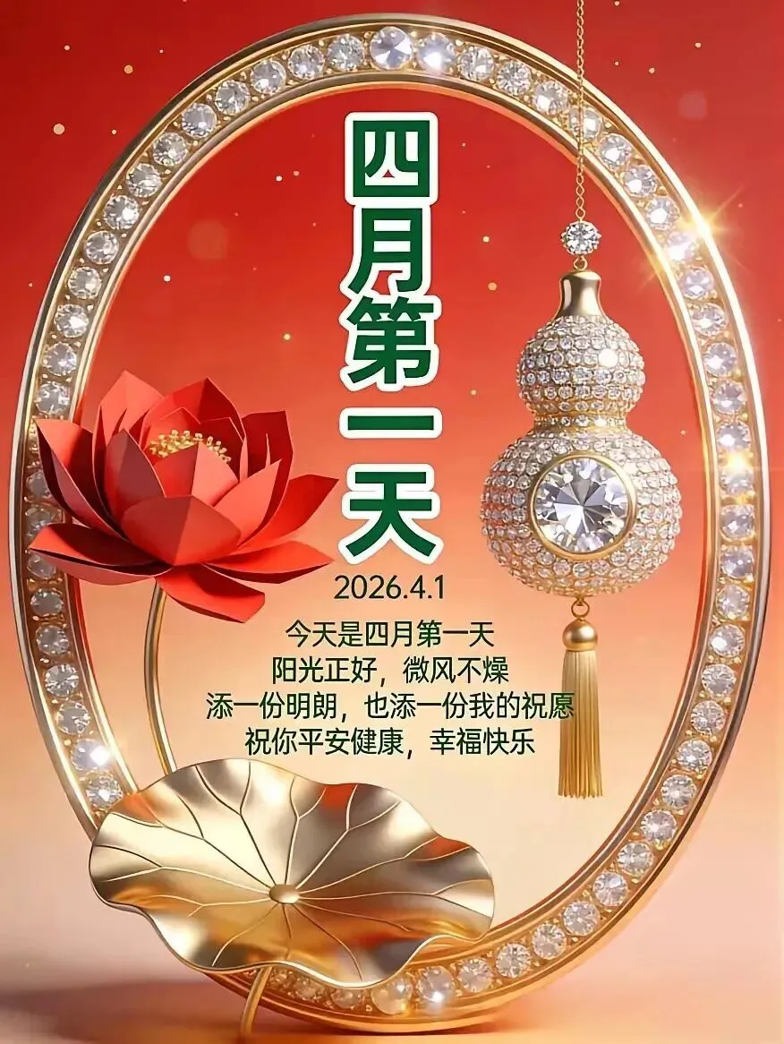 3月再见,感恩相伴;4月你好,温暖同行,晨起道声早!愿你福寿绵长,平安喜乐,日子越过越甜。早安!