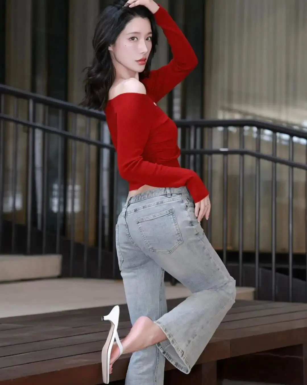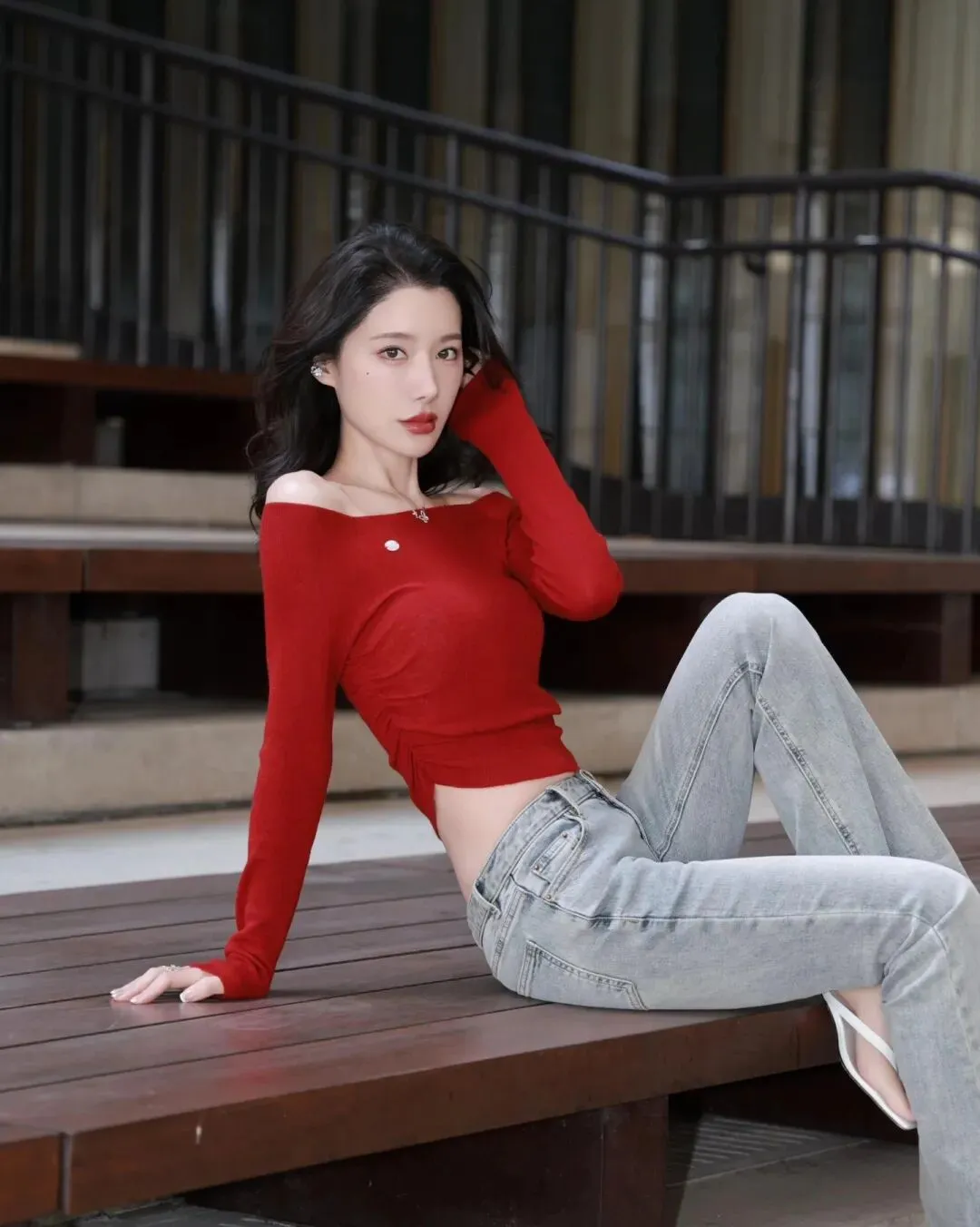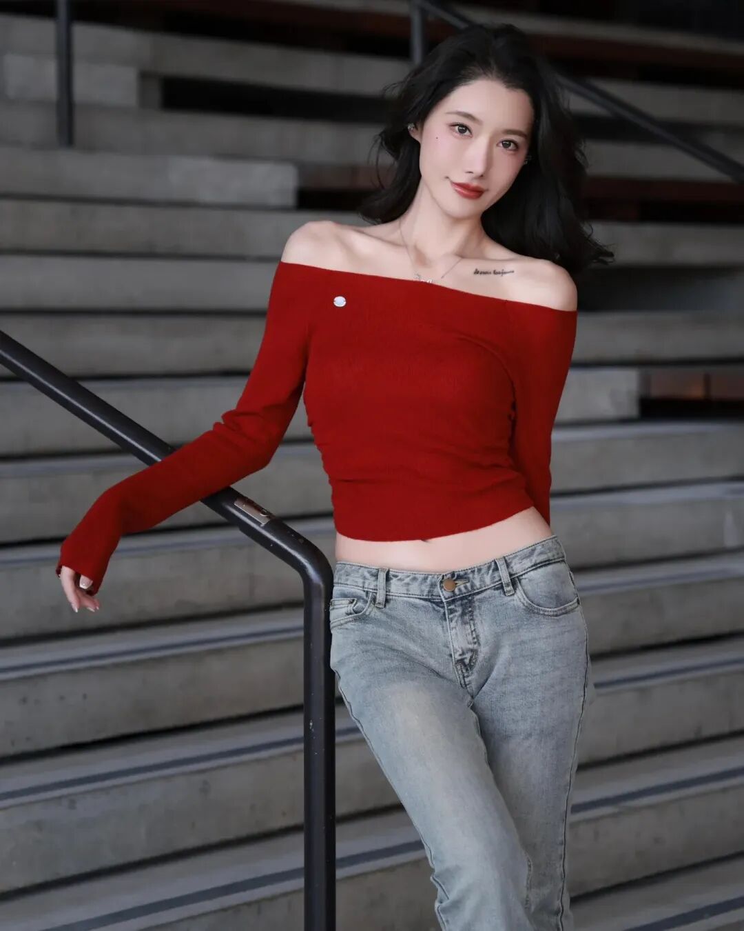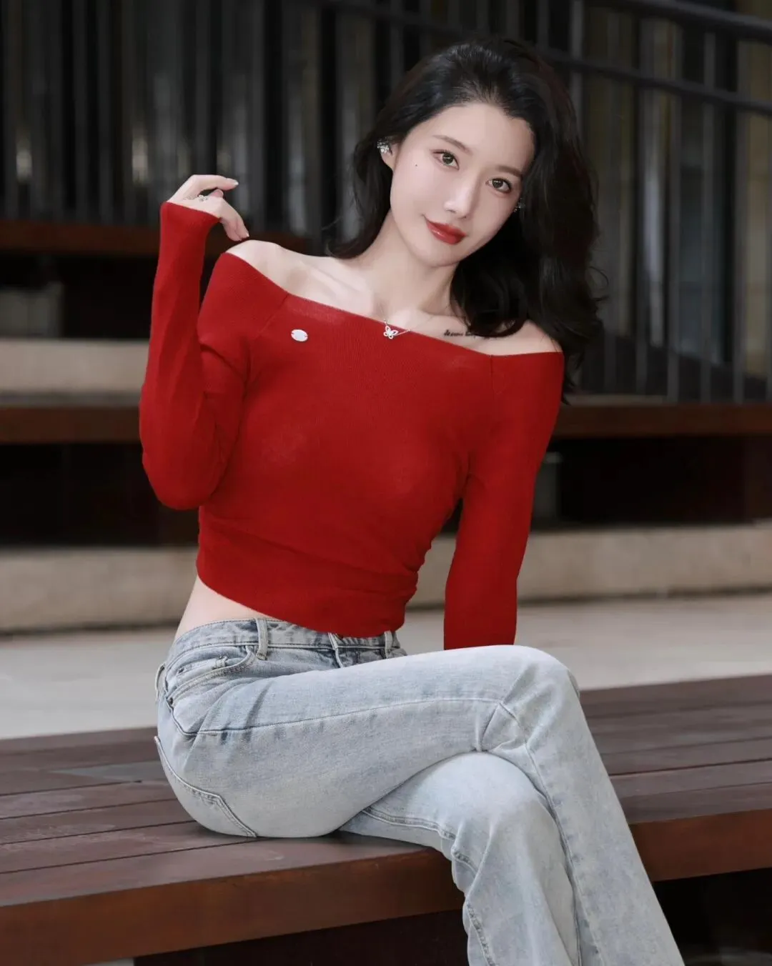 当前位置:首页>美女资讯>极品模特露肩红衫+牛仔裤,锁骨杀与微笑定格秋日心动