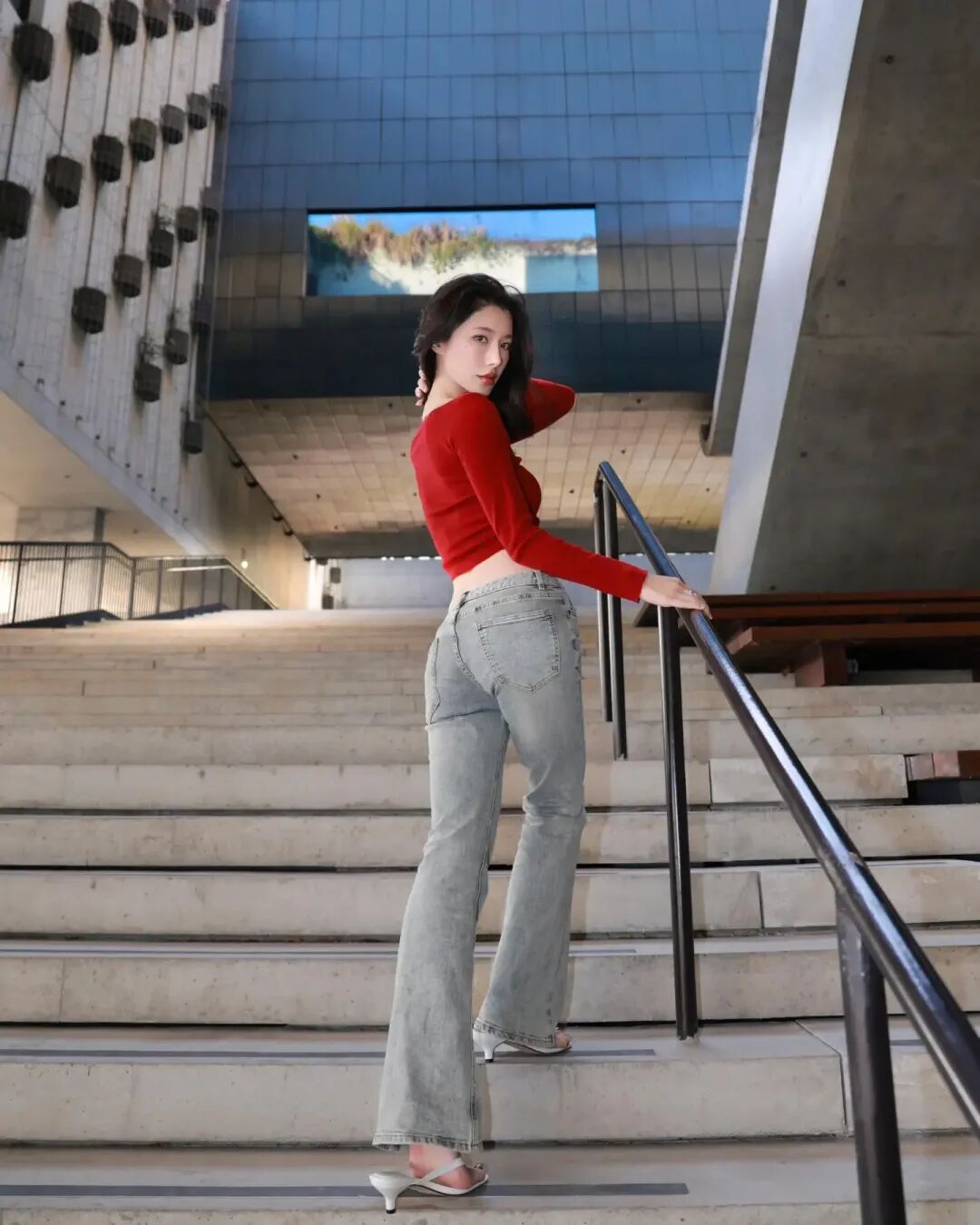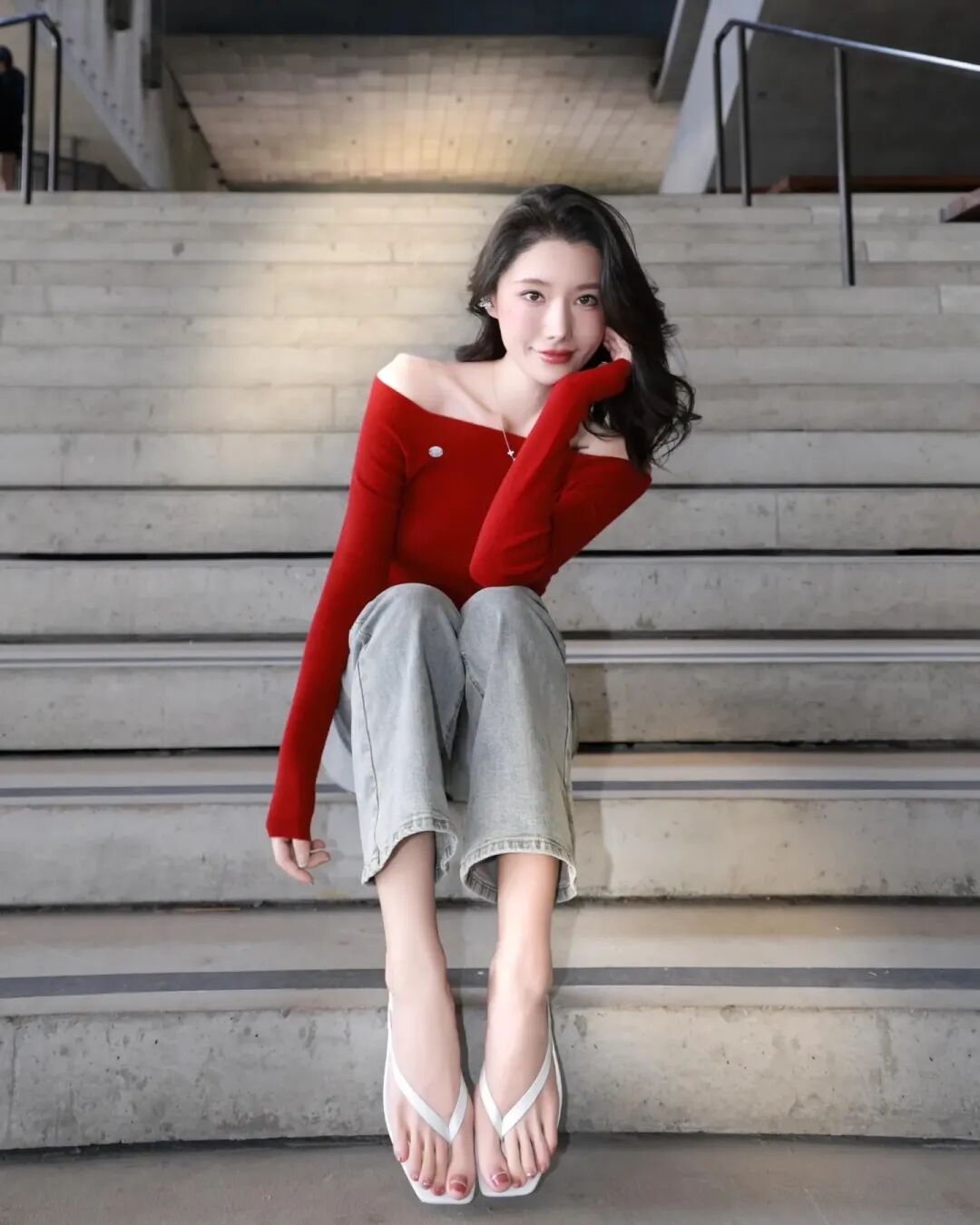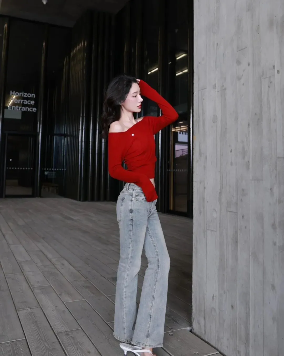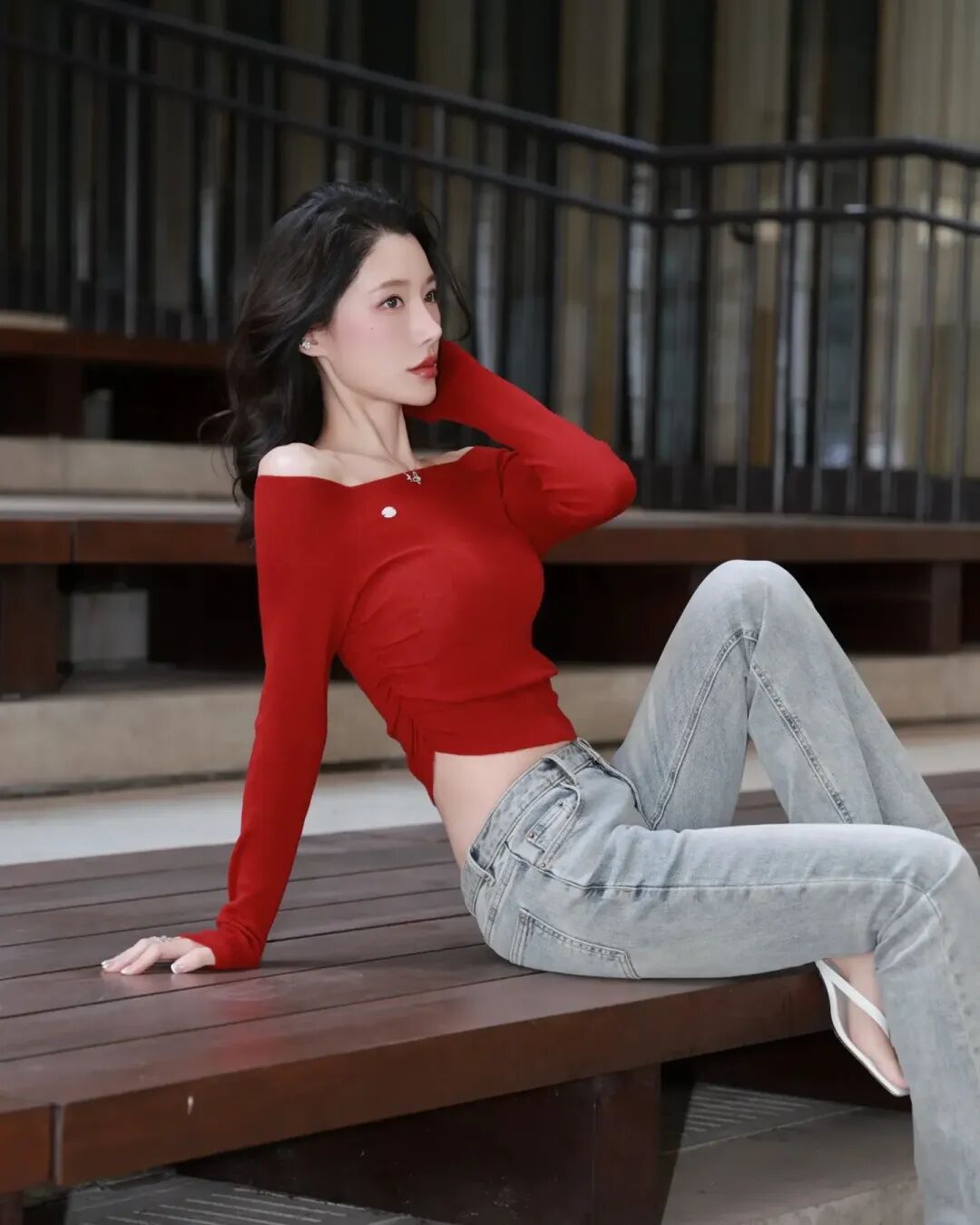当前位置:首页>美女资讯>极品模特露肩红衫+牛仔裤,锁骨杀与微笑定格秋日心动