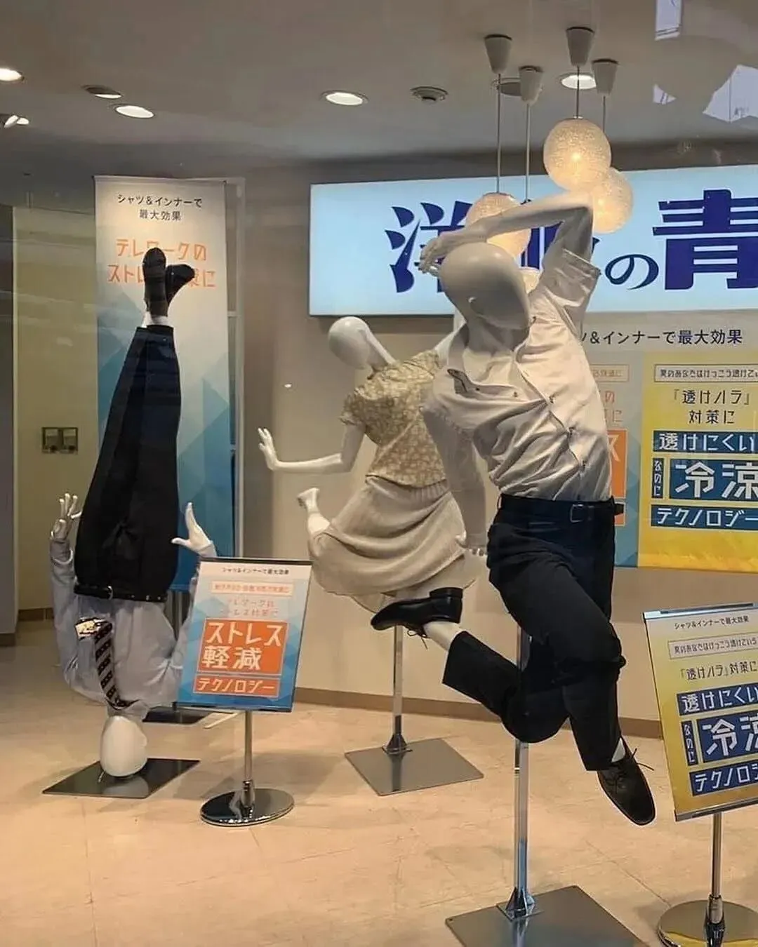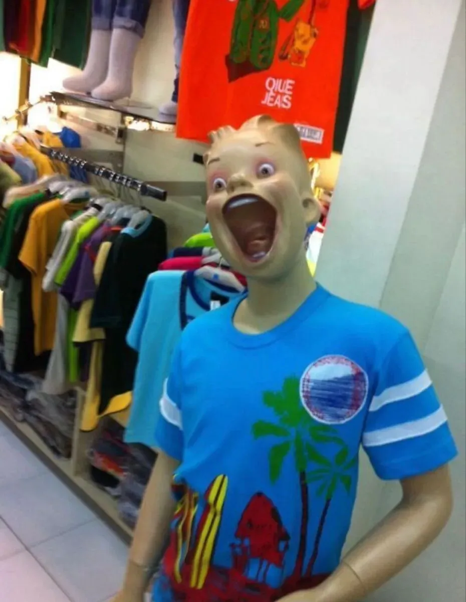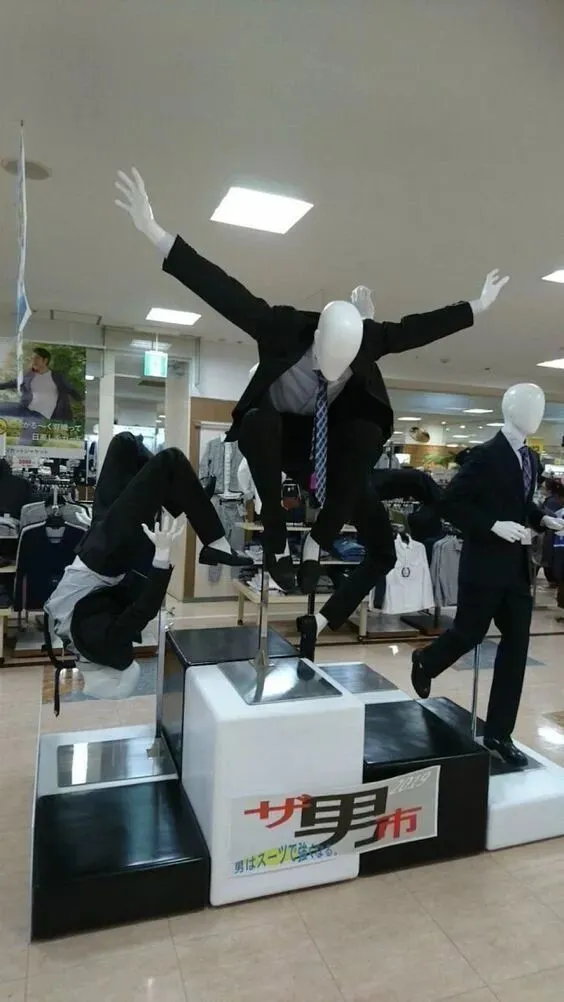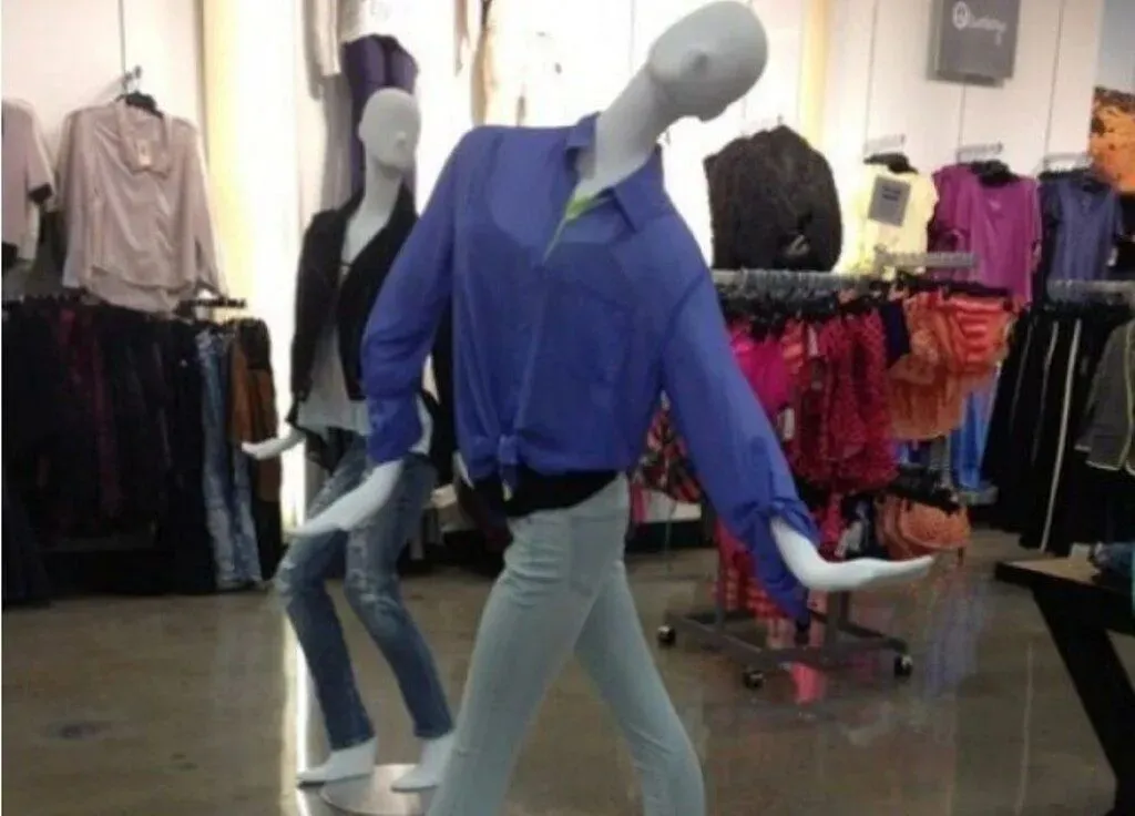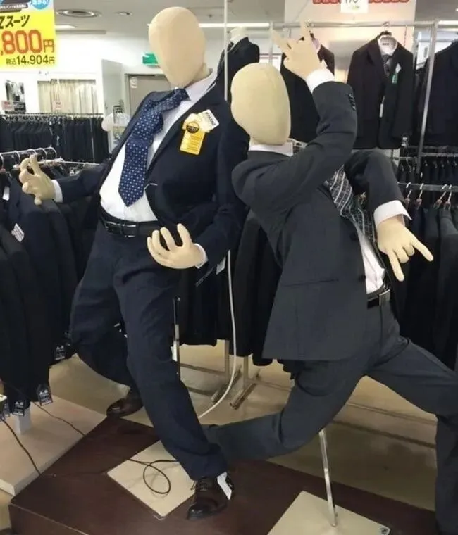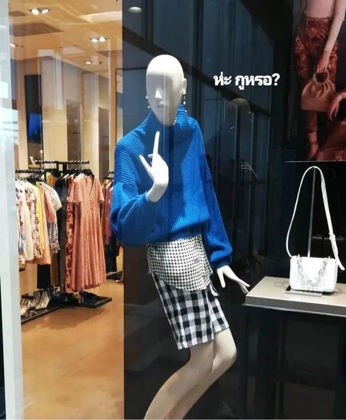 逛过服装店的都知道,店铺里通常会有一些假人模特来展示衣服,可万万没想到的是,一些店主竟然脑洞大开,把原本正经的模特摆出各种搞笑的动作,真是令人忍俊不禁。