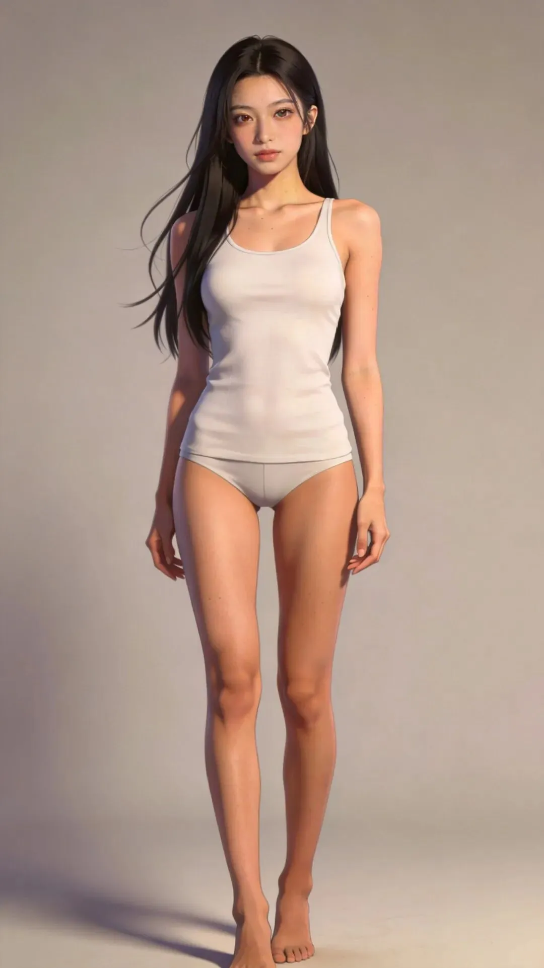 身材匀称高挑,腰臀比例协调,腿部线条流畅,气质清纯温婉