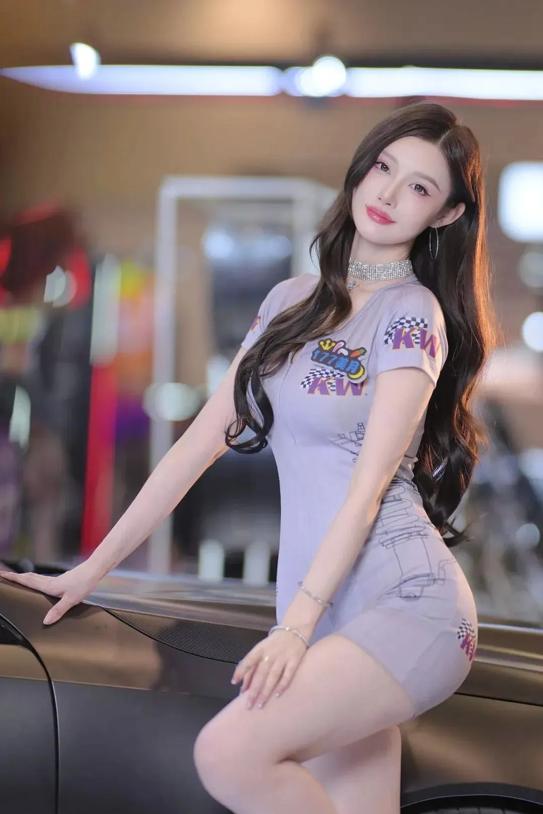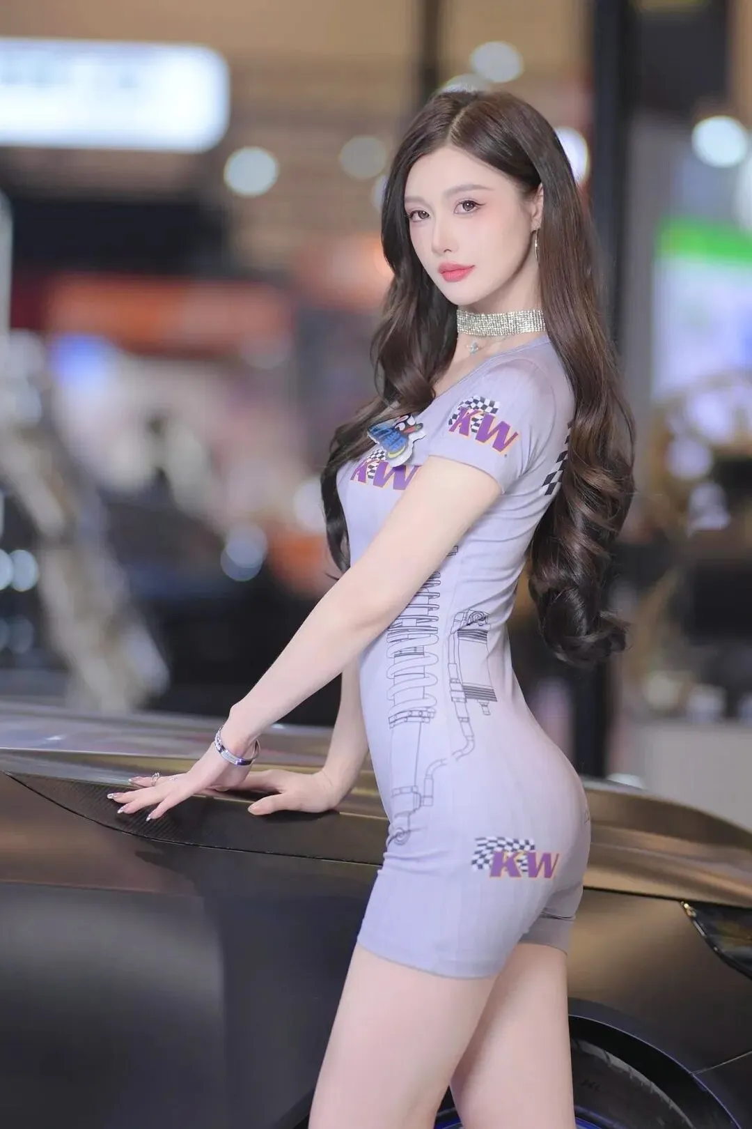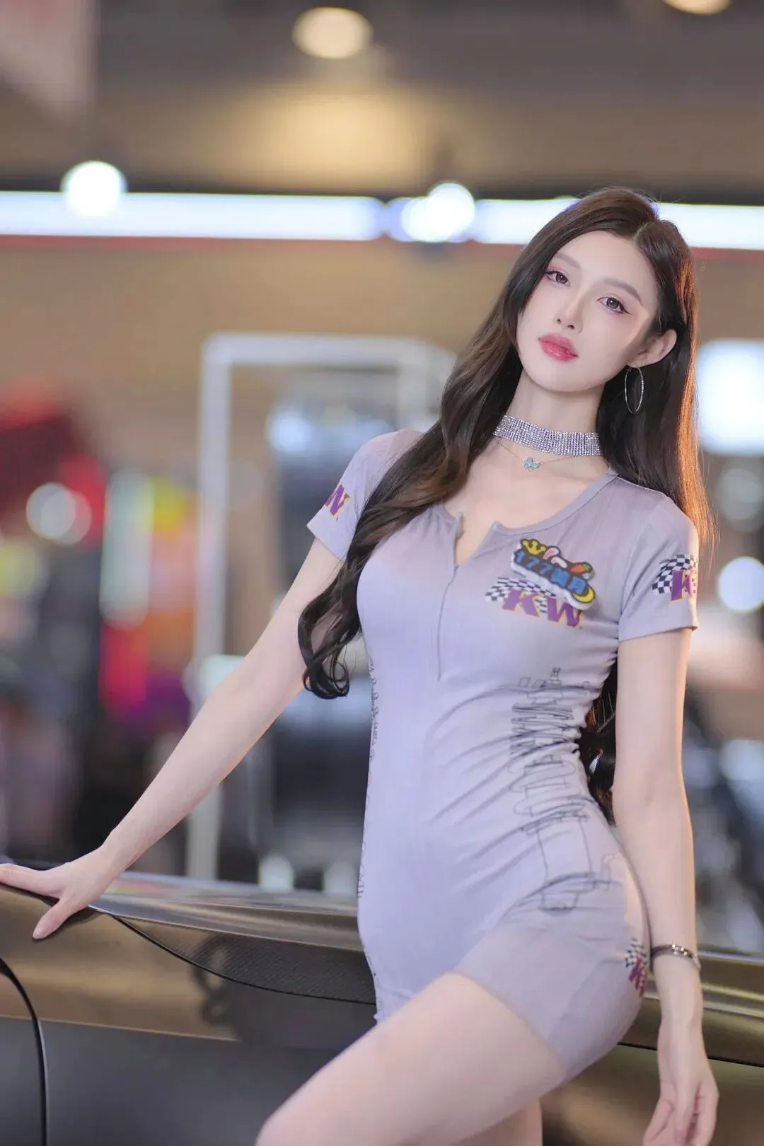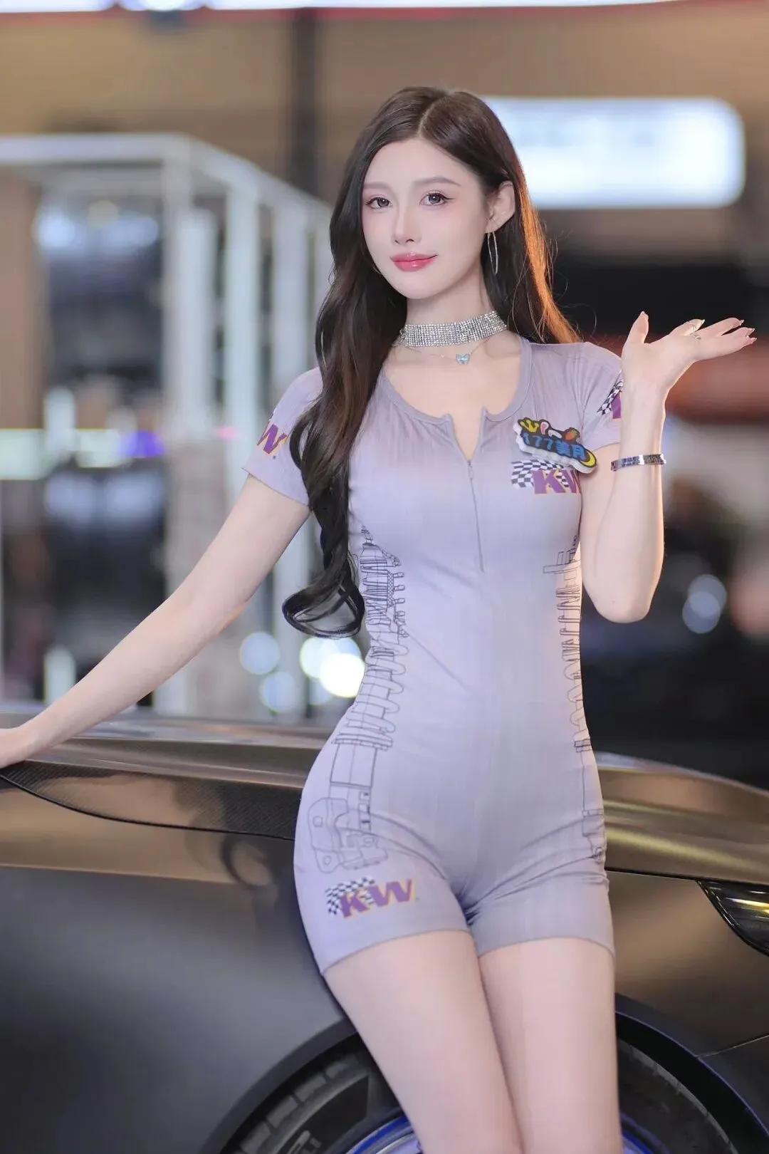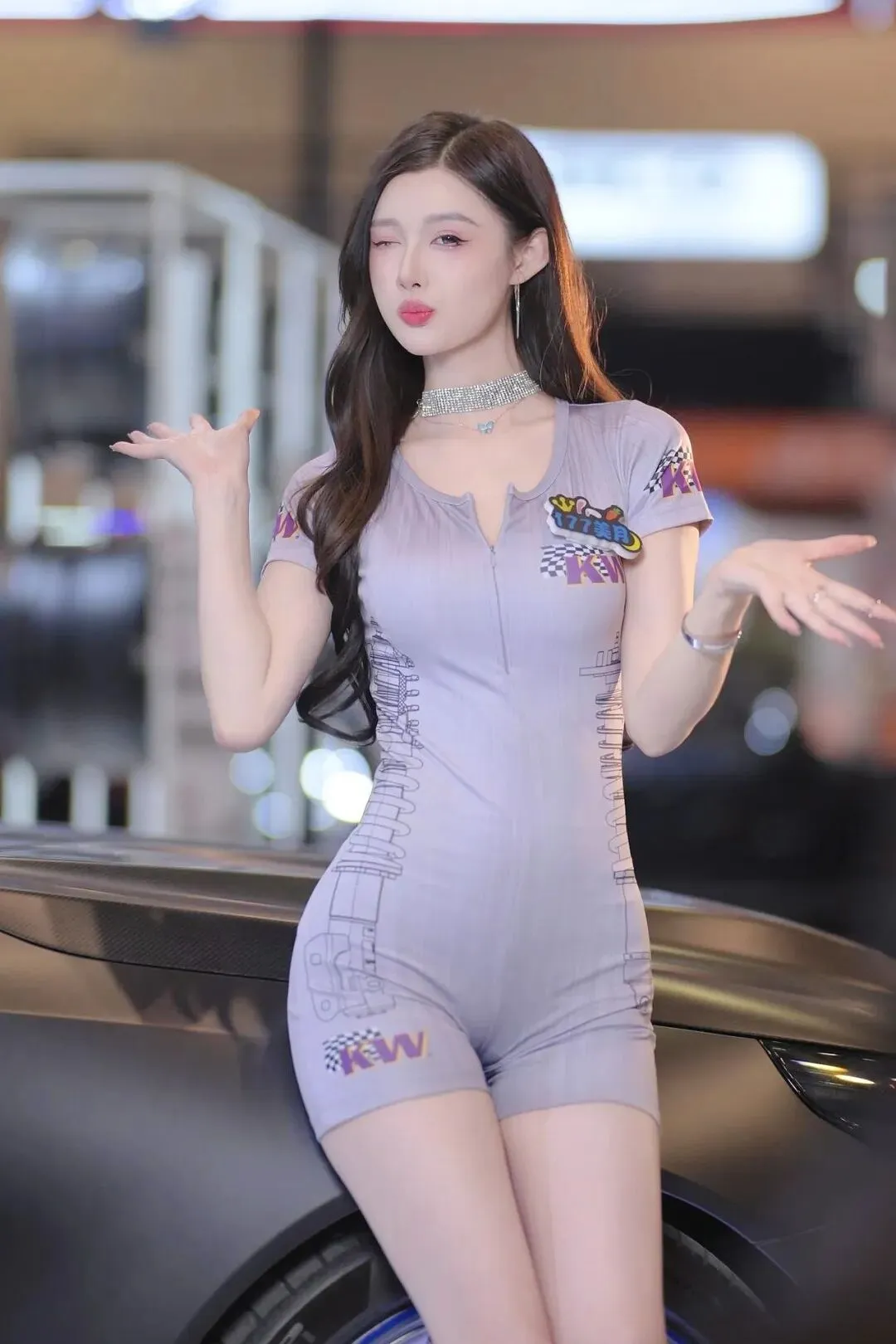 📷引擎轰鸣是背景音,镜头定格是高光时刻。浅灰赛车风连体衣勾勒利落线条,钻饰颈链点亮冷艳气场,靠在黑车旁的瞬间,把速度与性感焊在画面里,每一寸都写满车模的张力与魅力。
