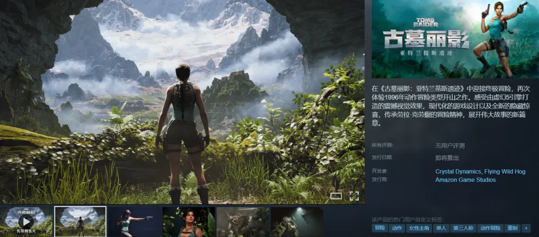 另一款新作,1996年《古墓丽影》的重制版《古墓丽影:亚特兰蒂斯遗迹》也在昨日正式公布!官方网站同步上线,网页支持简中。