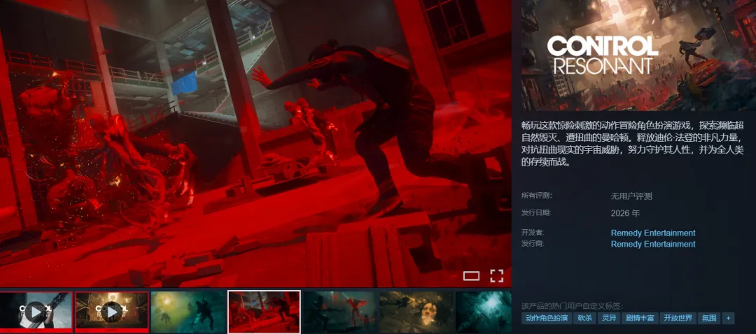 Remedy在近日(12月12日)举办的TGA2025颁奖典礼上公布了超能力游戏《控制》的续作《控制Resonant》,目前该游戏的Steam商店页面现已上线,游戏预计2026年发布。