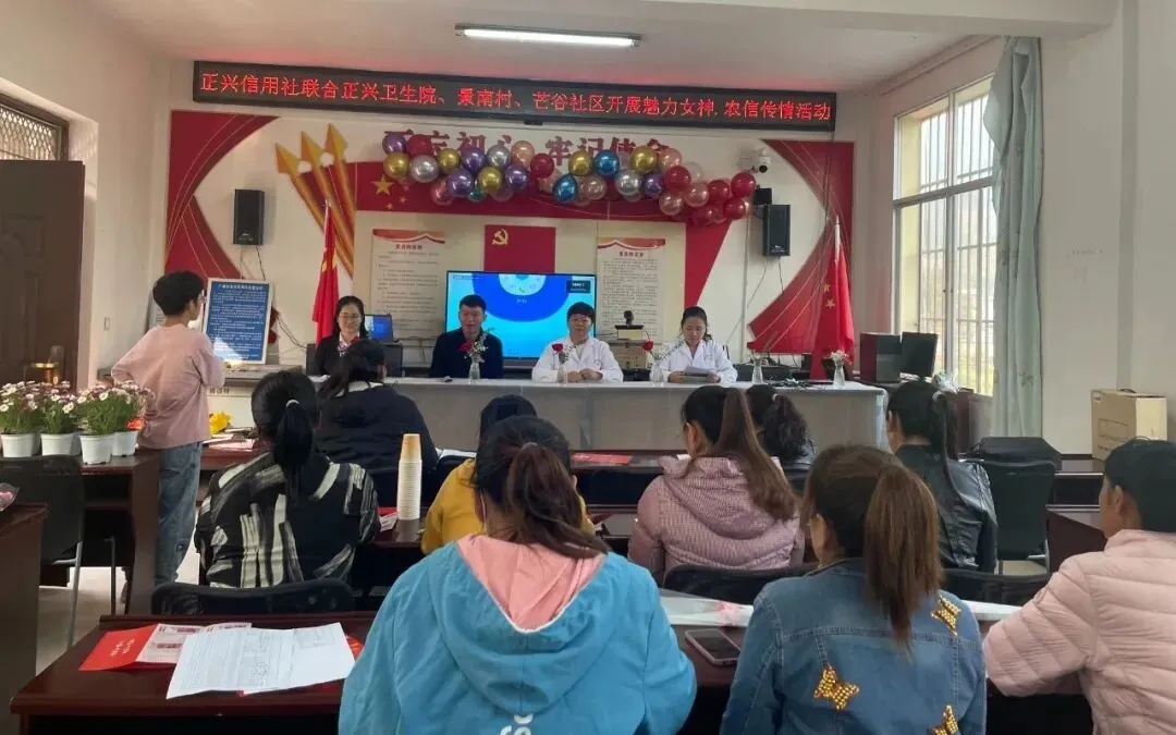 一堂讲座,让您变得更美。正兴信用社在辖内联合正兴卫生院、景南村、芒谷社区开展“魅力女神–农信传情”女性健康知识讲座。特邀卫生院院长为大家讲解女性健康、皮肤护理知识,整堂讲座生动形象、通俗易懂,内容翔实,知识专业,引导大家树立健康护肤理念。正兴信用社工作人员与客户相聚一起,学习护肤知识,为女神们送上鲜花,传递农信的暖与爱。