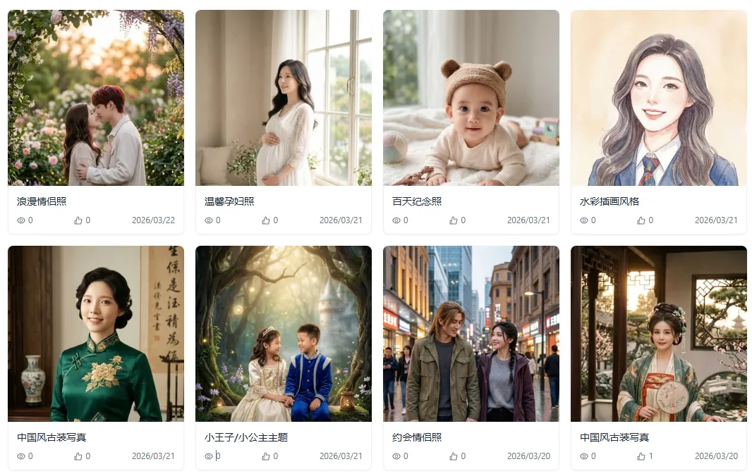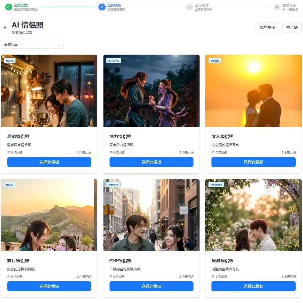打开上面的网址后,找到AI情侣照,这里有一些模板供大家选择。
