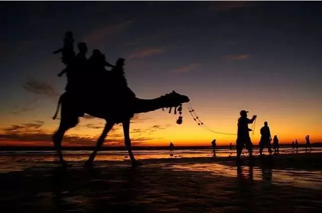 沙漠里骑骆驼很常见,你有没有试过海边骑骆驼呢?