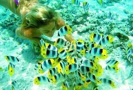 来到大溪地,就不能错过和鱼儿、海龟嬉戏的机会,那里的海不深,清澈见底,人们只要划一个小帆船就可以到那些温顺的海鱼、海龟们会游到浅海处,到时候可以摸一摸它们,也不用太担心它们会咬你。