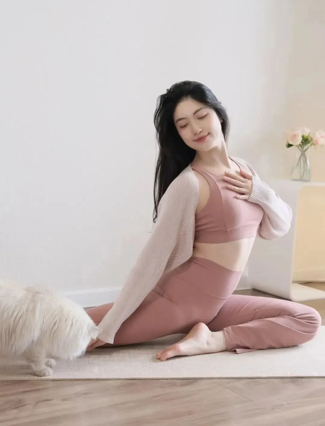 周末宅家不想出门,又想拍一组有质感的照片,其实一面白墙加一张瑜伽垫就够了。很多姐妹觉得居家拍照背景太单调,但在我看来,越是简单的环境,越能突出人物本身的状态和情绪。今天分享这套粉色瑜伽服居家写真,不需要复杂的布景,也不用担心表情僵硬,只要舒展身体,就能拍出温柔又高级的氛围感。