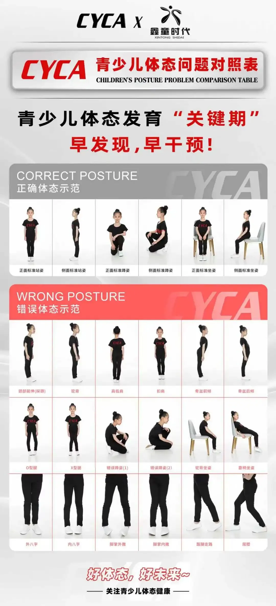 据统计,我国青少年中,含胸驼背、探颈、高低肩、骨盆前倾、O型腿、内外八字等不良体态问题普遍存在。这些问题不仅影响外观,更可能引发一系列健康隐患: