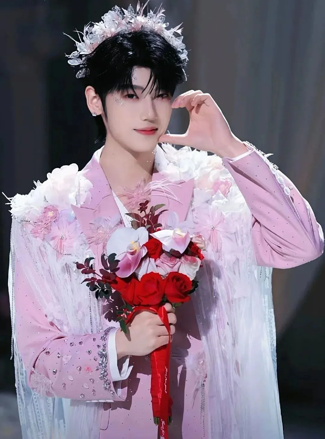 我真正认出萝卜就是娄滋博,已经不记得具体是什么时候了。大概是《溯》那段手势舞出来的时候,小红书被“卡卡”和“萝卜”的《溯》刷了屏。我当时觉得这段手势舞真好看,想学。而“萝卜”的造型也让人眼前一亮——一个男生,一身鲜花粉色妆造,竟然不油腻、不妖艳,反而让人觉得美好。也就是那时,我知道了他就是娄滋博。心里想着:大厂男孩也是好起来了,有了舞台。