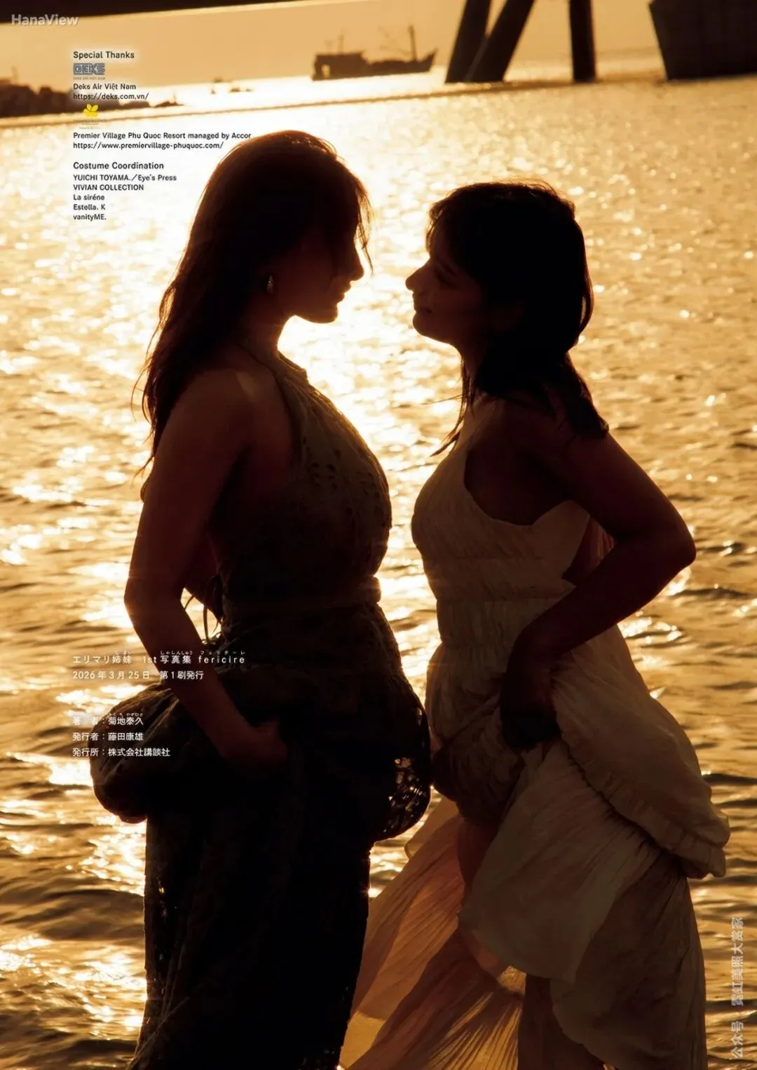 席卷日本写真界的人气亲姐妹组合エリマリ姉妹,首本写真集《fericire》已于2026年3月25日正式发售。这对组合由日罗混血的姐姐Erika、妹妹百濑麻里奈组成,时隔6年重返写真界,终于推出了属于两人的首部正式写真作品。本次拍摄由知名摄影师菊地泰久负责,全程在有着“越南最后的秘境”之称的富国岛取景,满是海岛度假的松弛氛围感。