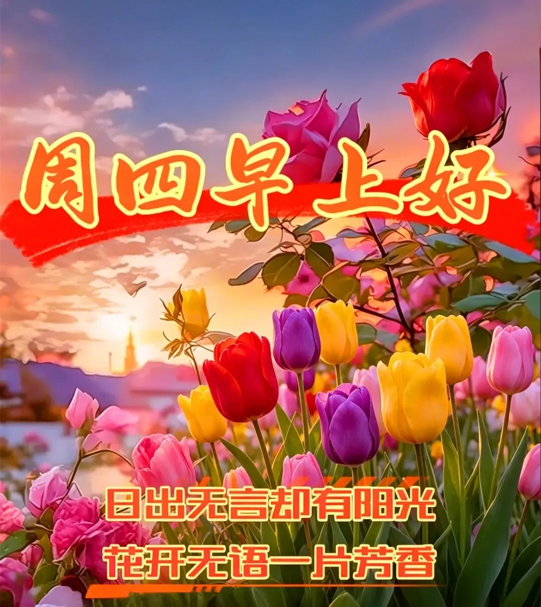 将心中的美好,融入今晨朝阳,将温馨的祝福,送到你的身旁。愿你时时有快乐,日日都健康,岁岁都平安,周四早安愉快!