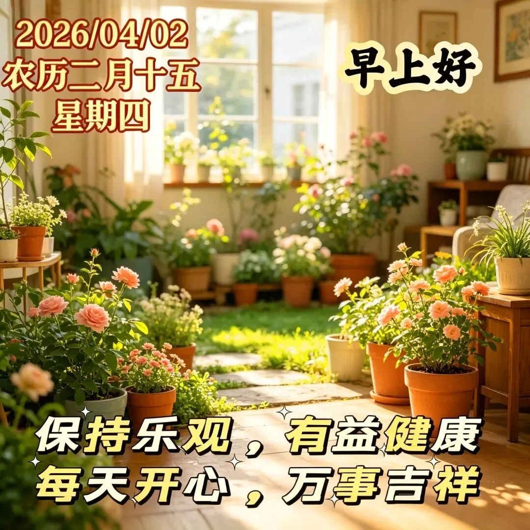 4月2日-周四早安漂亮图片祝福语+心怀阳光,一路芬芳,周四愉快!