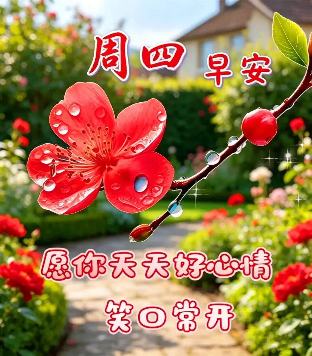 天天快乐、日日开心,分分秒秒平安如意,愿你的生活中充满着正能量,每一天都过得充实而有意义,周四愉快!