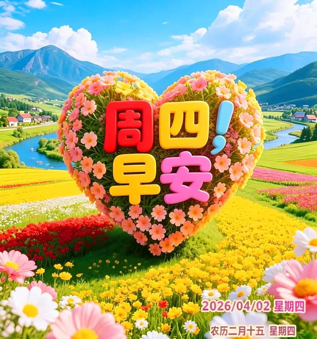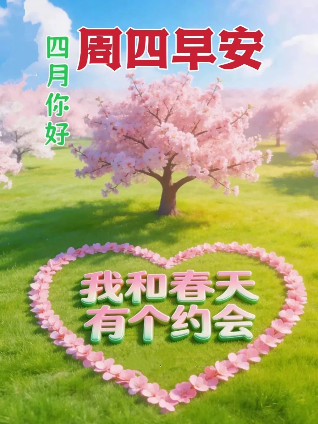 四月早安!新的月份,新的起点。愿你把三月的遗憾放下,把四月的期待装满。这个春天,好事正酝酿,一切皆如愿!🌞