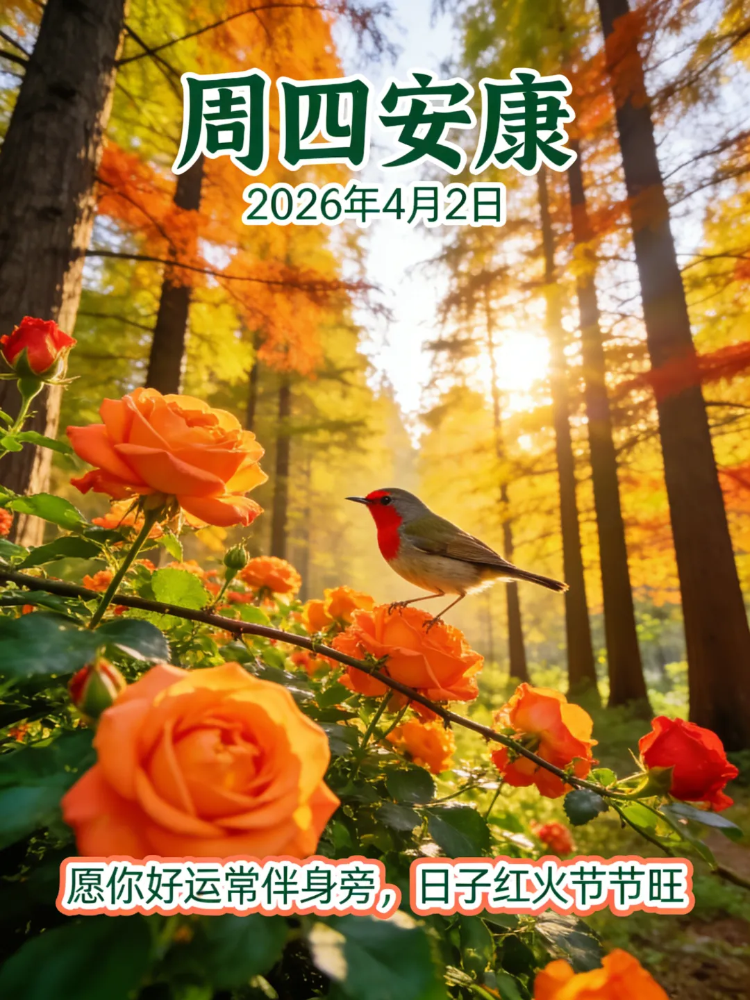 早安!四月第二天,春意正盎然。愿春风拂去旧日疲惫,暖阳照亮崭新起点。这个月,愿你心怀温柔,步履从容,与所有美好不期而遇。🌿