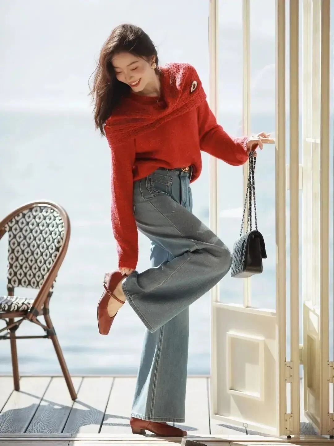 站在门边时,别直直站着!单脚抬起,手拎包带,另一只手轻扶门框,低头浅笑,让肢体有动态感。