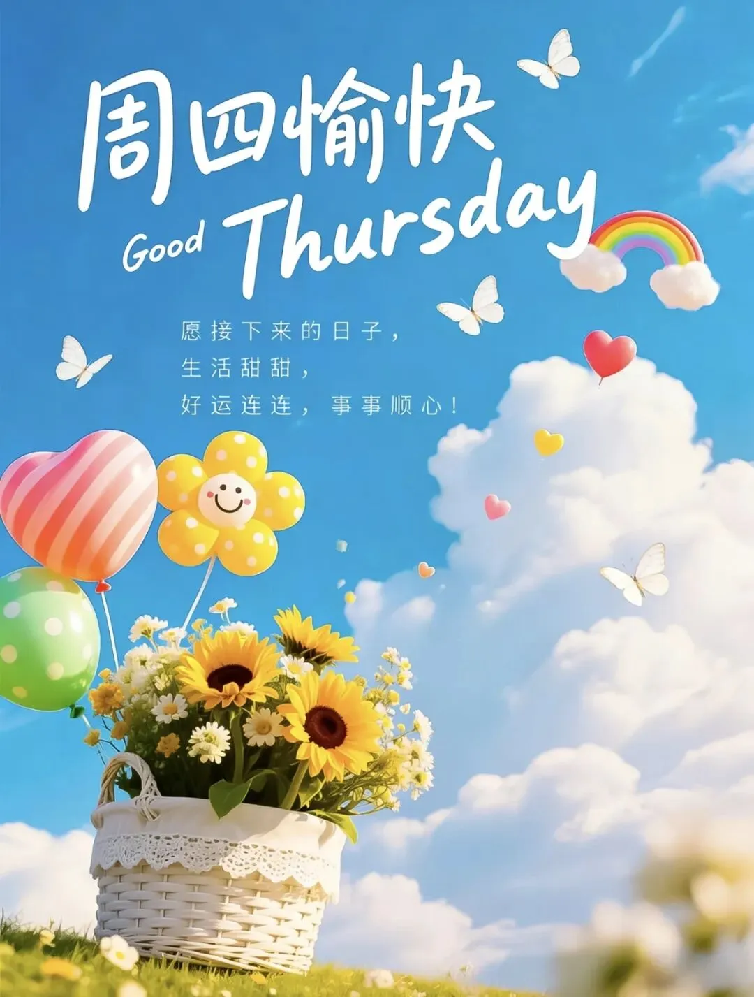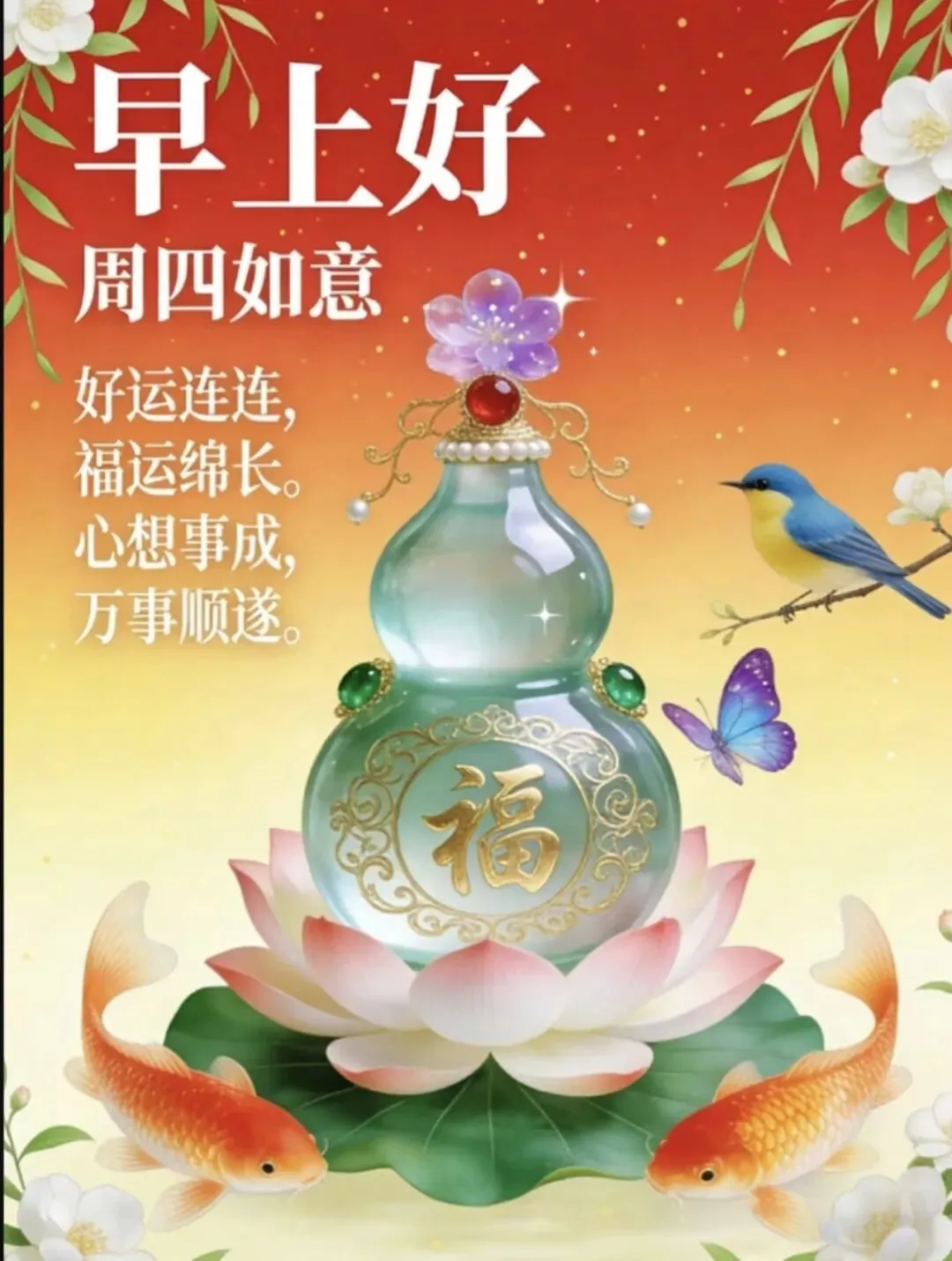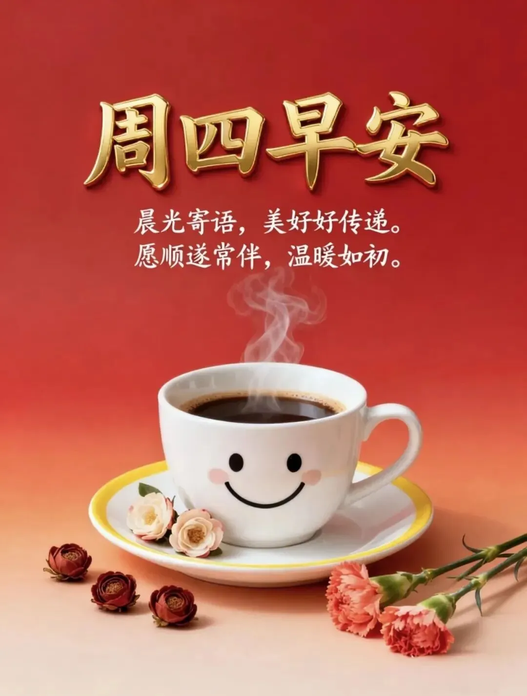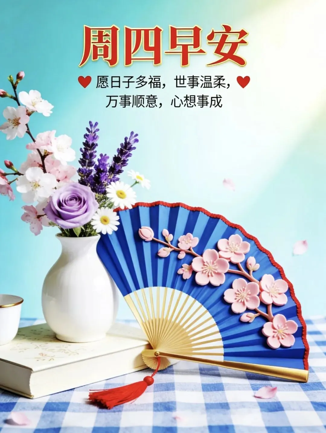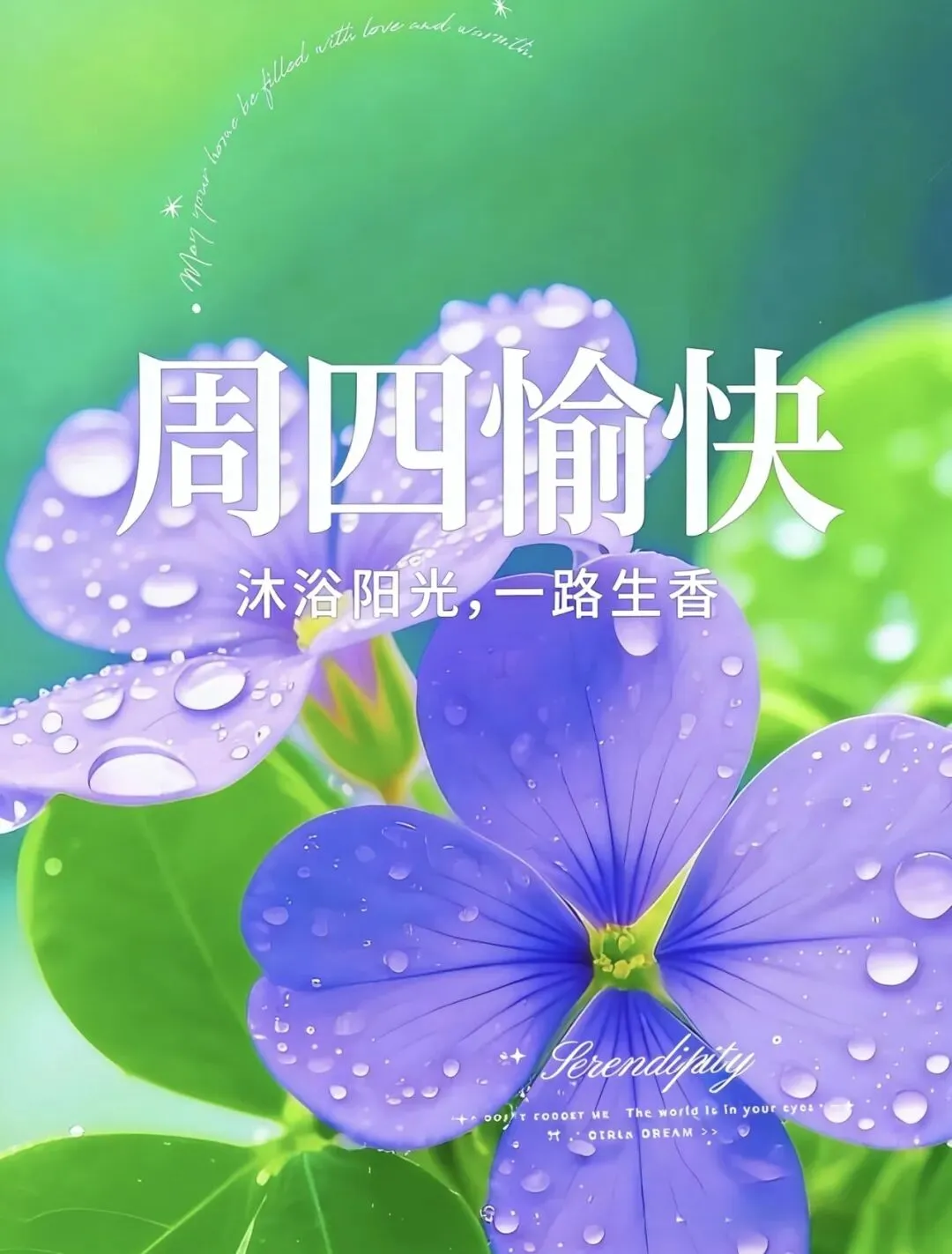 4、春风轻拂,晨曦微露🌤️,花开温柔,时光清浅🌸。愿你新的一天,心情明媚,步履轻盈,好运相伴,福气围绕,平安健康,喜乐无忧,开启美好清晨,早安周四🌷。