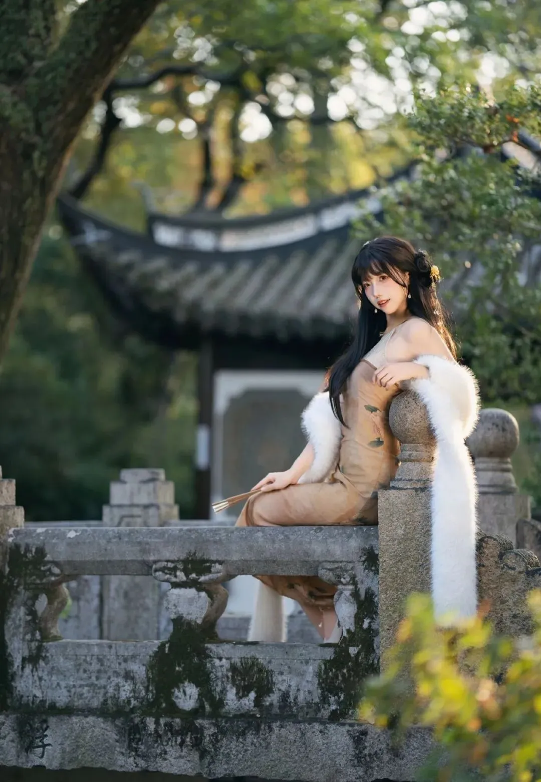 当前位置:首页>美女资讯>少女写真丨古园幽梦间披白裘的旗袍佳人