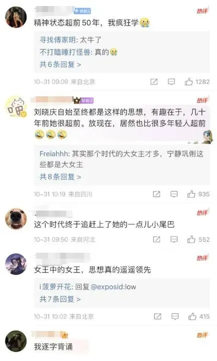 互联网时代,刘晓庆再度翻红,成为了拥有“超前精神状态”的大女人,网友表示,“精神状态领先我50年”“刘晓庆语录值得逐字背诵”“这才是时代的大女主”。