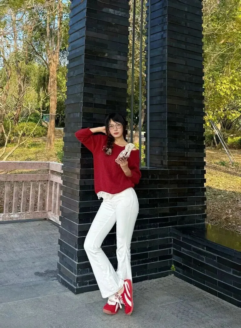 秋天的穿搭非常简单。一件酒红色毛衣、一条白色下装、一双拼色鞋加上一点小心机就可穿出满满的温柔感。在寒冷的秋季该穿什么?试试这个搭配方法。