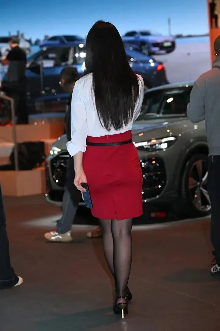 只有红裙子才是引人注目的。高腰包臀,腰线高高地立了起来,腿长顿时达到一米八。走路的时候裙摆微微晃动,那种风情绝了。红色本身就显眼,车展的灯光又使它更白、更漂亮。