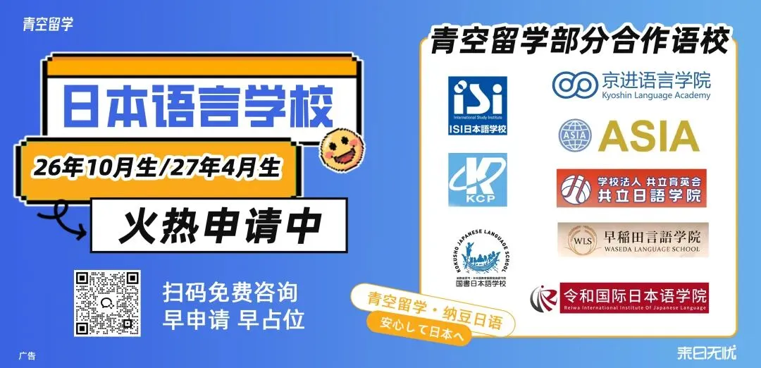 👋有小伙伴在后台留言:“语言学校怎么申请”,【青空留学合作日本语言学校火热申请中,快扫码免费咨询,早点占位吧!