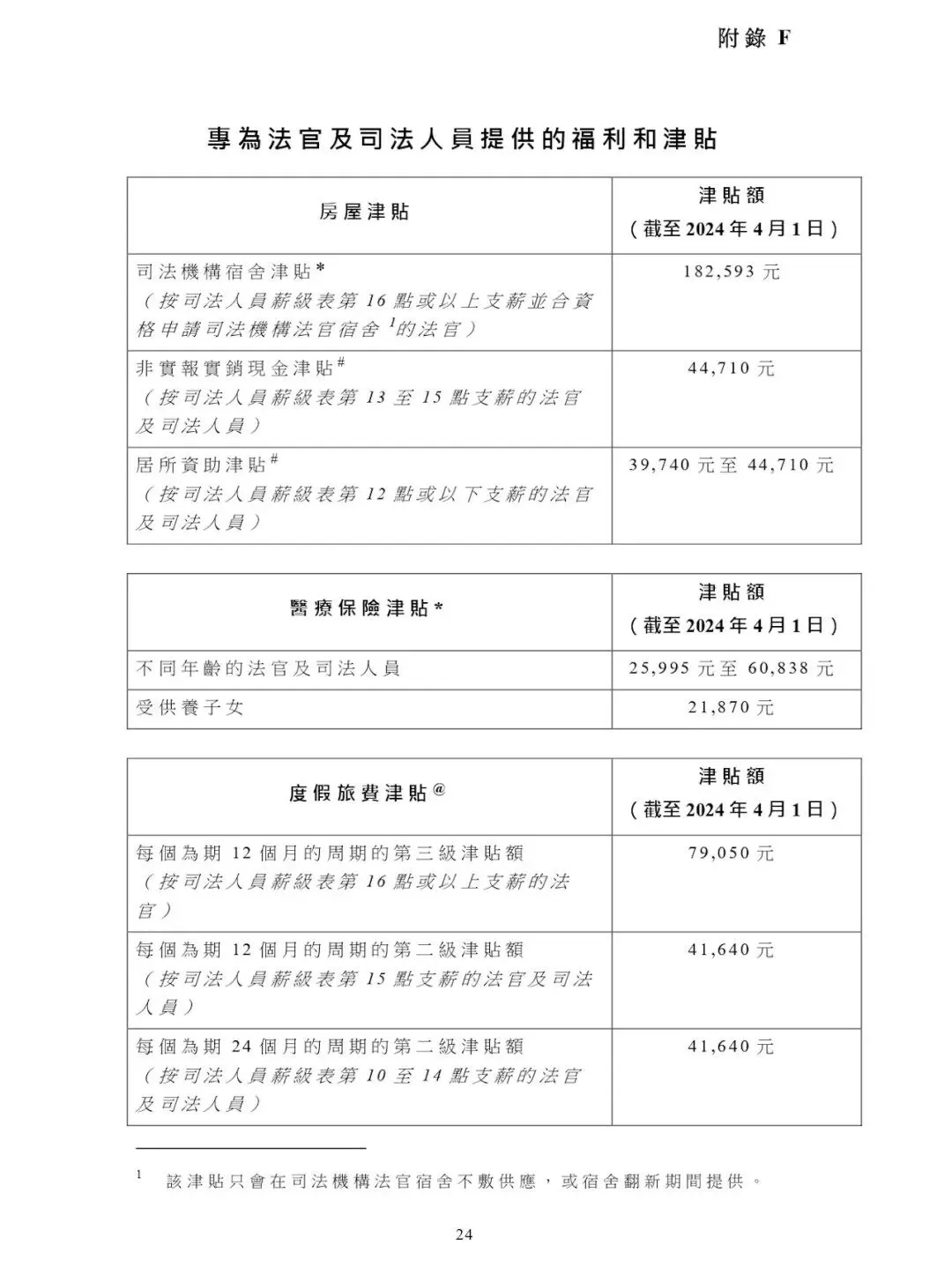 专为法官及司法人员提供的福利和津贴(二零二四年司法人员薪酬检讨报告 (二零二四年八月))