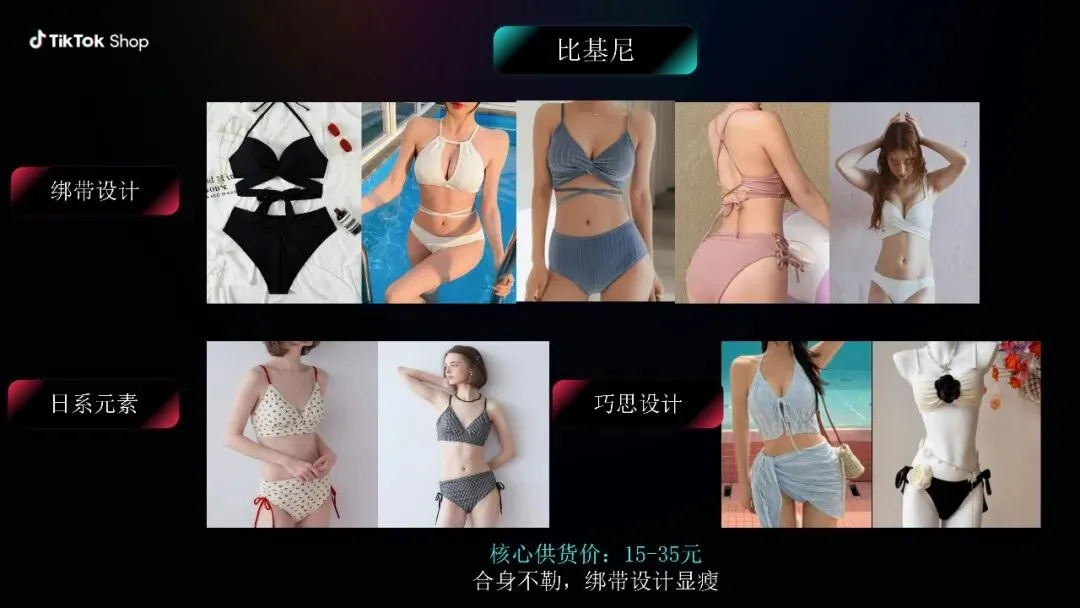 随着春夏换季消费热潮来袭,日本市场对泳装爆品的需求持续激增。TikTok Shop全托管综合行业招商经理结合平台爆品数据,为兴城泳装卖家给出精准选品指引。同时特别提醒,日本消费者注重细节与审美,泳装选品需兼顾实用性与颜值,其中莫兰迪色系、简约设计的款式更易获得市场认可,助力商家精准打造爆品。