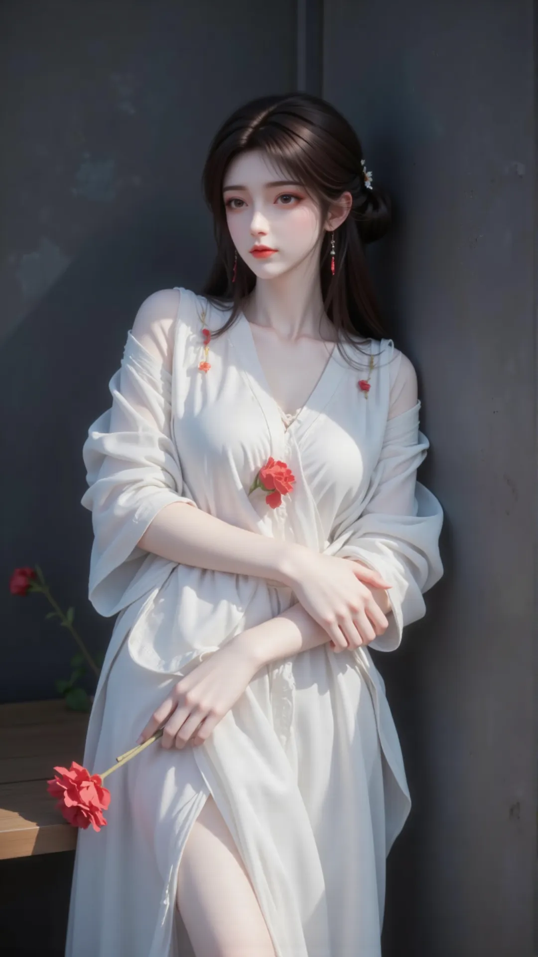 她立于灰墙之下,素衣临风,手持红玫,如高岭之花,孤傲绝尘,俯视众生万象;行走大荒之中,若惊鸿掠影,风姿绰约,牵动万千心绪。历经战火洗礼,褪去青涩,更显成熟妩媚,每一寸肌理都透着精致,每一个神态都藏着风情。既有公主的娇俏灵动,亦有强者的凛然霸气,执掌火族,震慑四方;亦有女子的温婉柔情,心藏挚爱,情系一人。