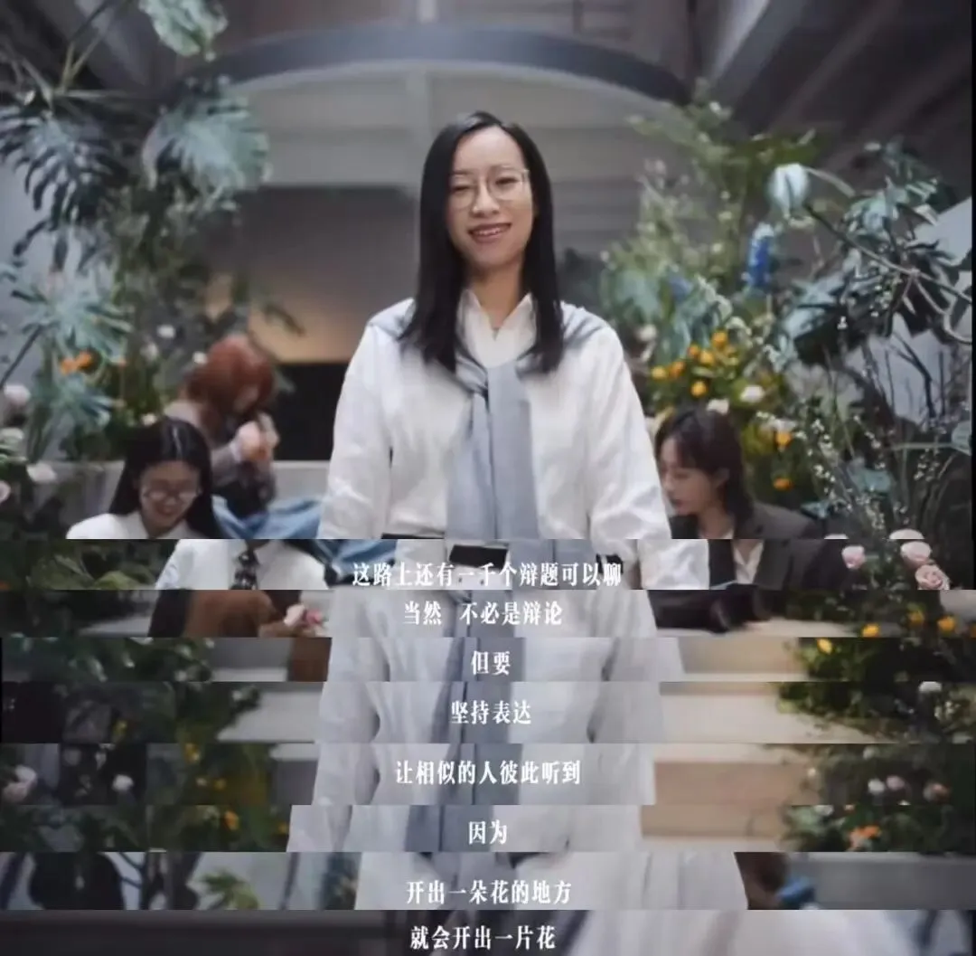 最后,我想用詹青云在今年妇女节广告中说的一句话来结束今天的演讲。“这路上还有一千个辩题可以聊。当然,不必是辩论,但要坚持表达,让相似的人彼此听到,因为开出一朵花的地方,就会开出一片花真诚祝愿所有女生自信、独立、有力量。谢谢大家!