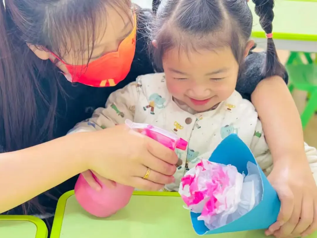 孩子们充分发挥想象力,把黏土搓成花瓣、捏出花蕊,不一会儿,形态各异的花朵便在他们手中诞生。这些黏土花不仅锻炼了孩子们的动手能力,更承载着他们对妈妈满满的祝福。