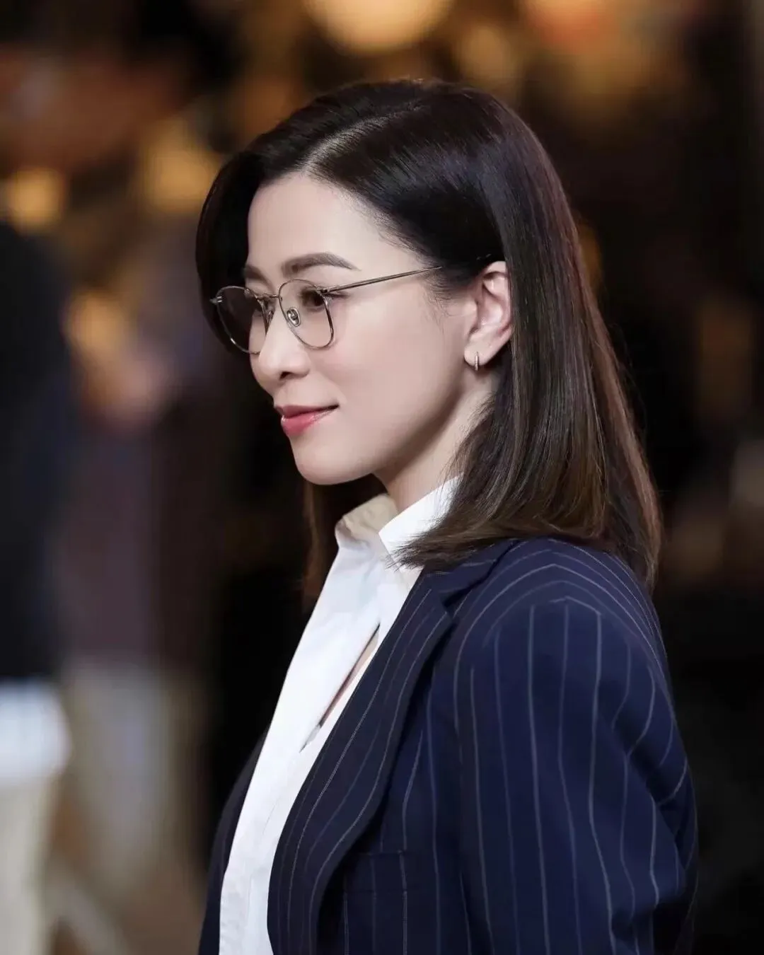 这款眼镜采用了奢华的22K白金镀层,让金属框在灯光下闪烁着温润且细腻的银白色光辉,既发挥提亮作用,也让面容看起来更加利落、冷静,加上方形大框的设计,非常适合营造阿畲在剧中作为法官的专业气场