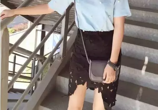 今年大热竖条纹,领口独特的设计真的很棒,有一种小性感在里面,竖条非常显瘦搭配黑色不规则一步裙,简约休闲非常干练。