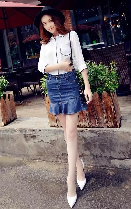 俏皮减龄的牛仔半身裙, 鱼尾裙包臀一步裙款型,优雅更有淑女风范!搭配衬衫便是小清新,立显气质凸显出流线型身姿。