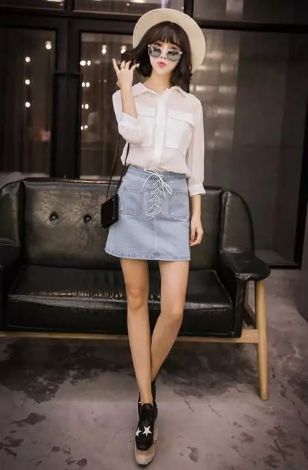 宽松的纯白衬衣,搭配牛仔简单包臀裙,独特视觉感,展露女性休闲品位。