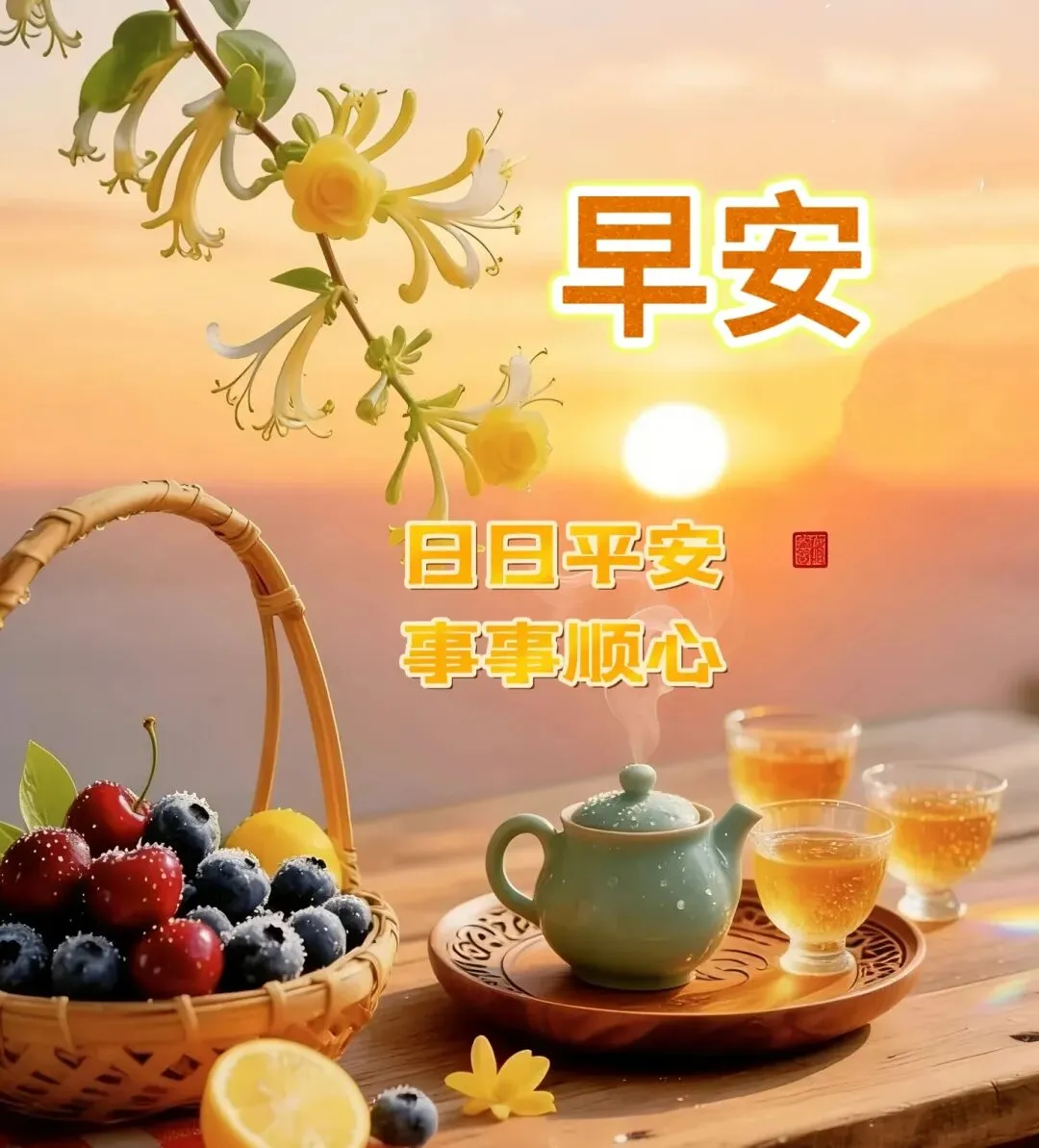 一句早安 浓浓心意!人生路上 彼此珍惜!保重身体健康第一!新的一天开始,万事如意!衷心祝福:平安!顺心!安康!如意!早安吉祥!