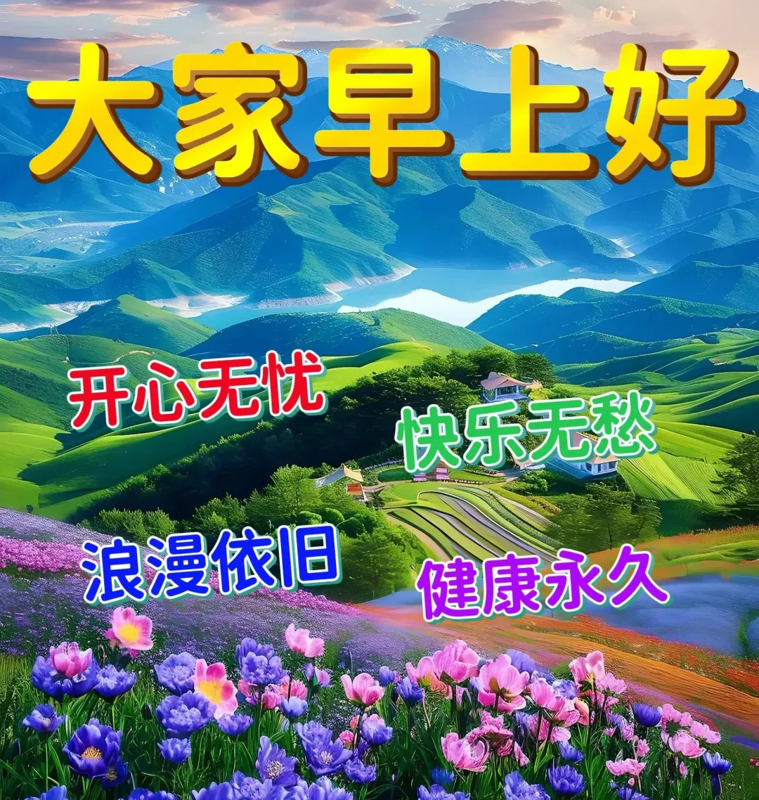 清晨问候愿你岁岁平安,早安祝福愿你日日欢颜。愿这份温馨问候与祝福,带给你一整天惬意舒畅,身体倍儿棒,生活美满,早安,吉祥如意!🌹🌺🌞❤️🙏🎉