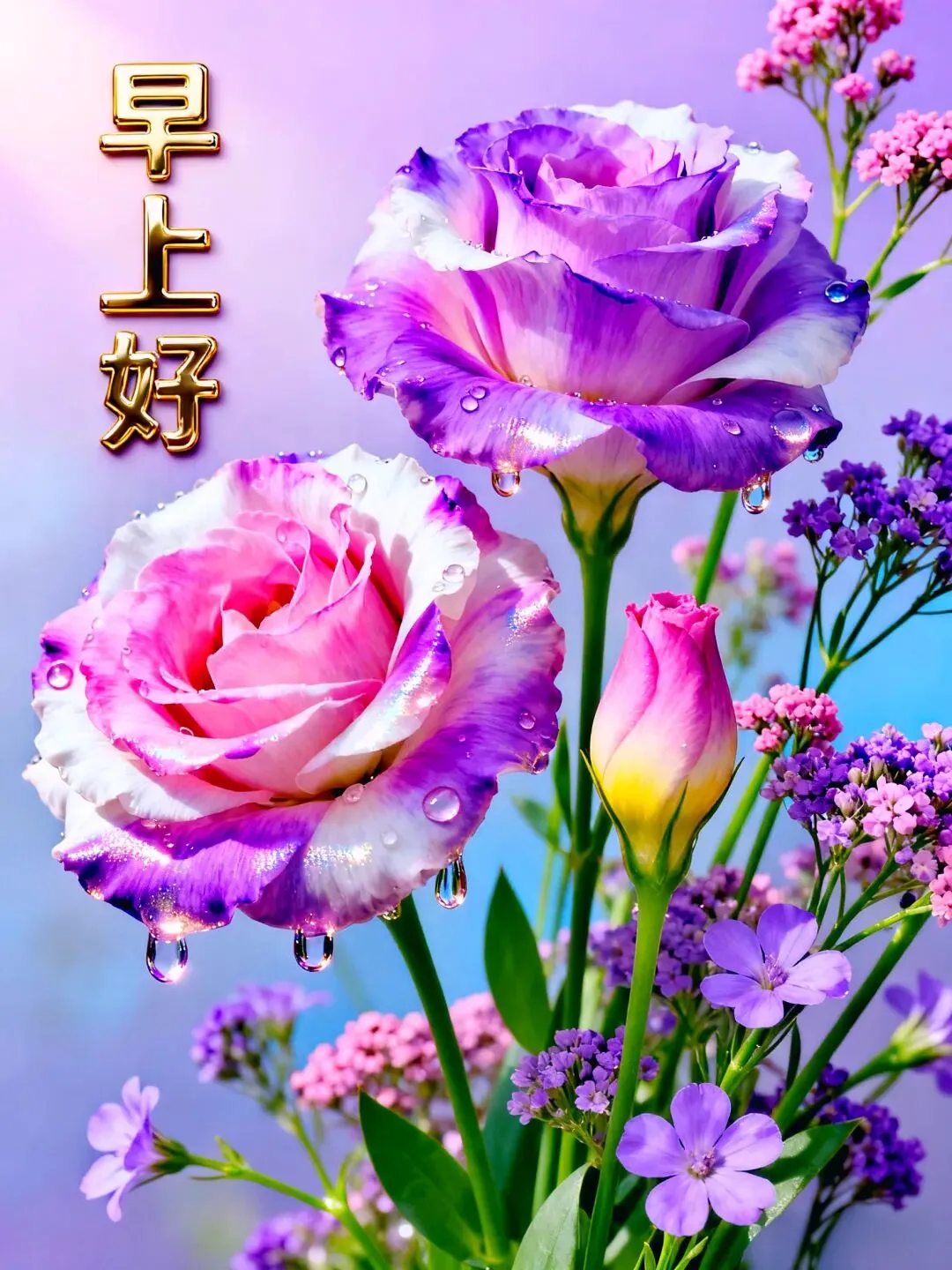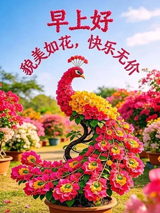 清晨放飞美好祝愿,开启崭新一天。福禄寿喜齐聚,平安喜乐环绕。吉星福星相伴,开心快乐每一天,吉祥如意每一年。愿新的一天收获满满!早安!🌹❤️☕️🎉🙏☀️
