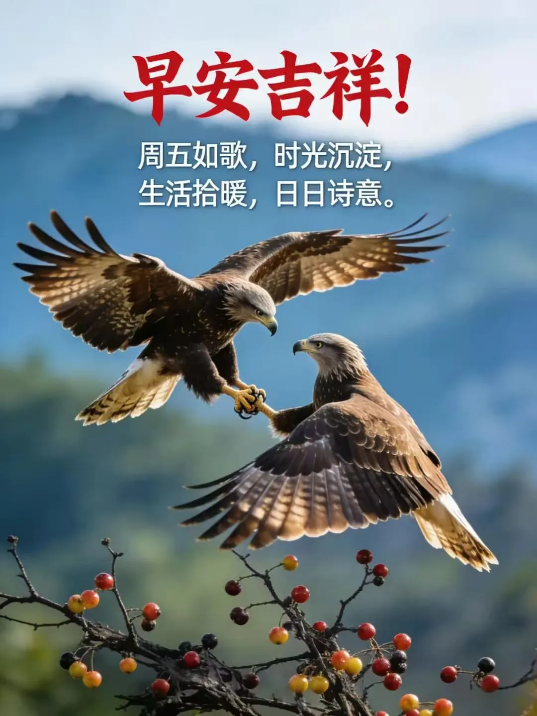 山有秀峰水有泉,人间有爱常挂牵;清晨寄语送安康,顺遂无忧是心愿;阴晴冷暖多留意,舒心惬意度流年,周五早上好!