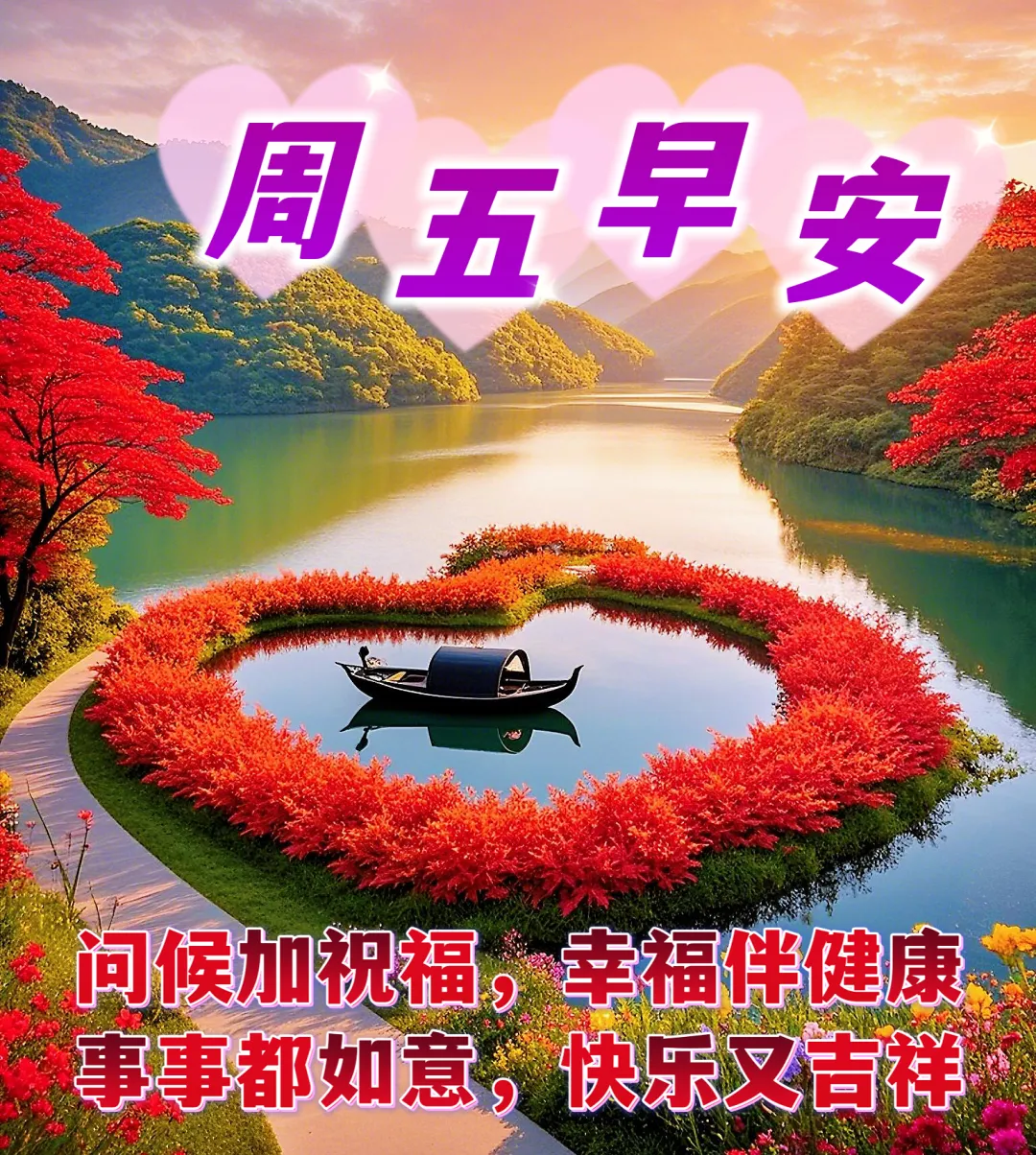 问候声声送平安,祝福句句送吉祥,开心快乐最是幸福,无烦无恼身康体健。每天的问候藏着深深牵挂,愿你岁岁幸福,日日安康!周五早上好!
