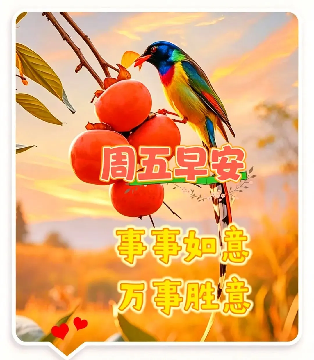 一声问候很简单,实则是在报平安,回首往事乃昨天,幸福快乐在今天,锦上添花待明天,平安健康每一天,周五早上好!