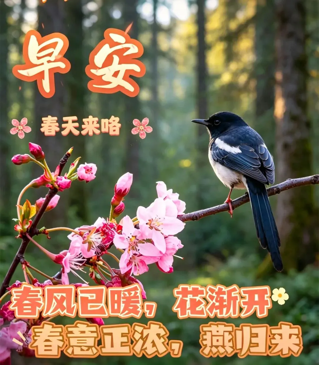 春风,春雨,春常在!春暖花开,好运连连;春风送暖,幸福满满!事事如意随心愿!开心快乐每一天,早上好!