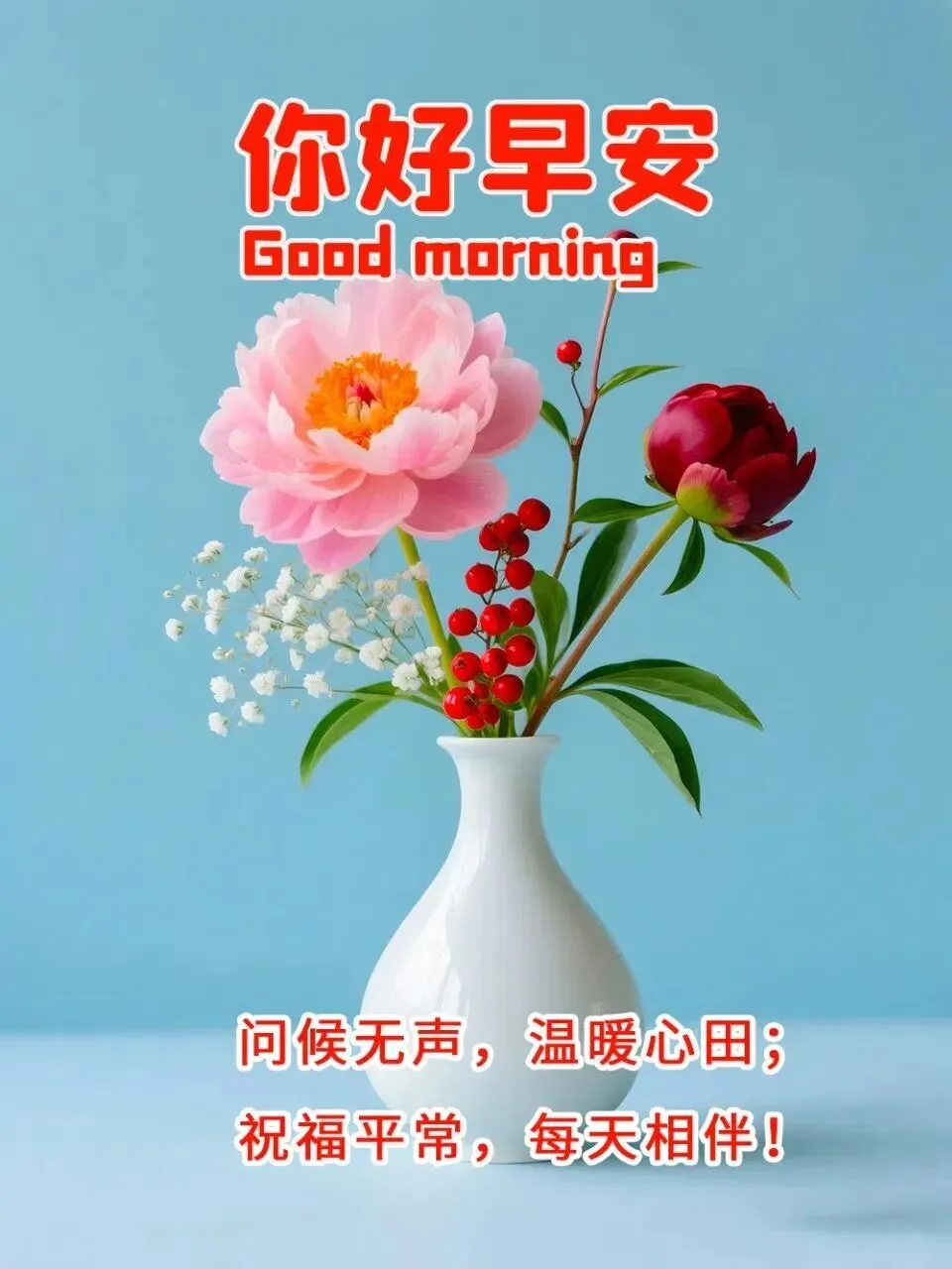 每天早上,都有美好的祝愿,沐浴着温暖的阳光,滋润着我们的心田。愿你健康乐,万事如意好,天天快快乐,幸福久久好,早安!