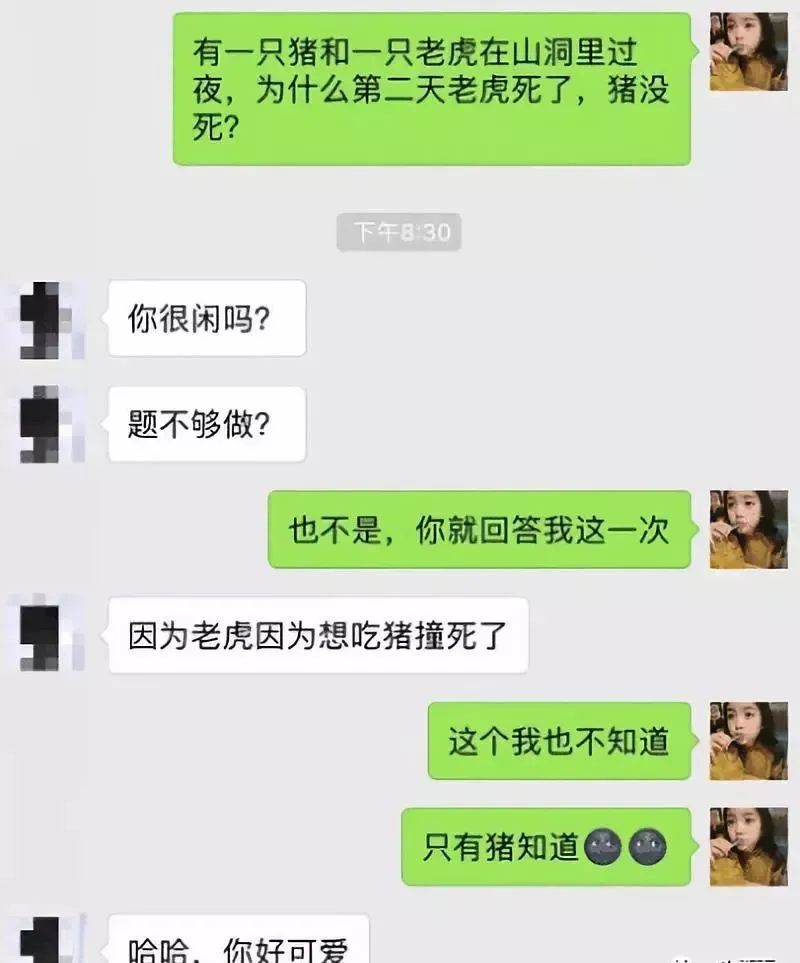 小倩的搞笑聊天记录:结婚前几天岳父抓住女婿的手,叮嘱道:“我没别的要求,小娟嫁过去以后,你要好好待她,有些事情她做的不对的地方你要迁就他,孩子记住有啥事儿好好说千万别和她动手”。说完老头止不住的老泪纵横,婚后没过多久小两口打架了,望着躺在医院里女婿,老头无奈的摇摇头:“哎,孩子你不听话啊!