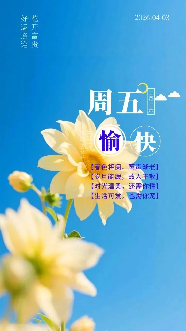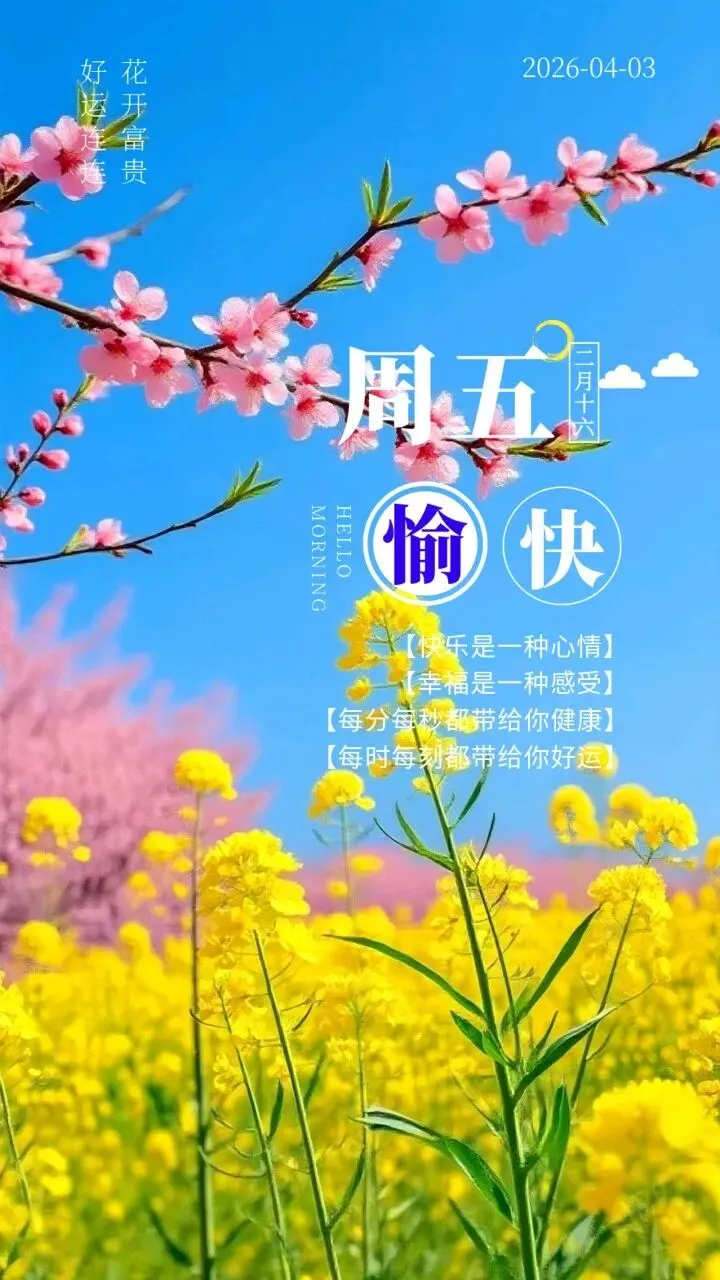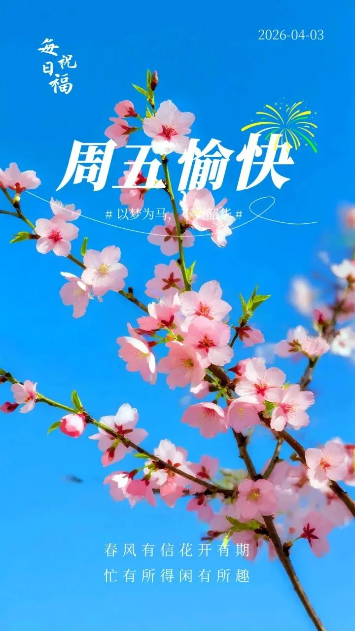 当前位置:首页>美女资讯>4月3日 周五愉快图片 周五早安祝福图片大全最新