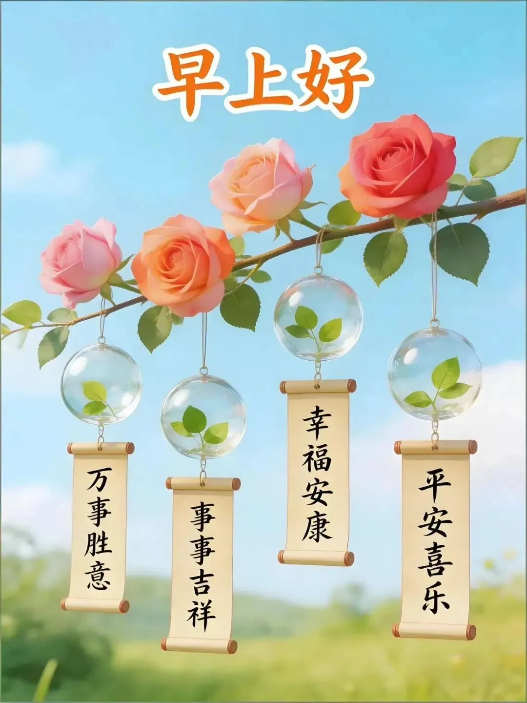 晨曦初照四月天,清风徐来暖人间,花香浮动迎新日,柳色轻摇映窗前,愿您今朝多喜乐,安康顺遂福绵绵。早安!🌹🙏🤝💯🌞🎉