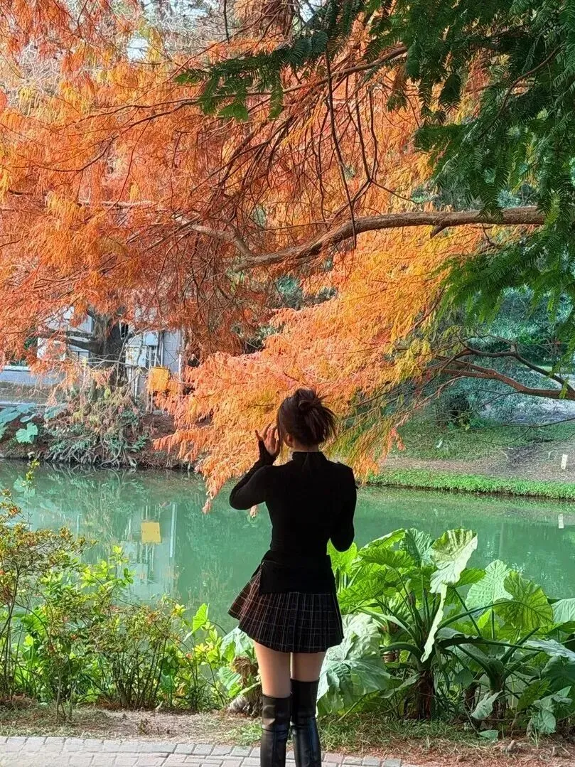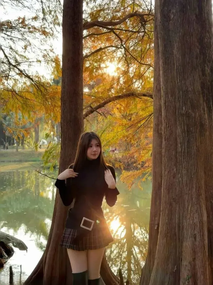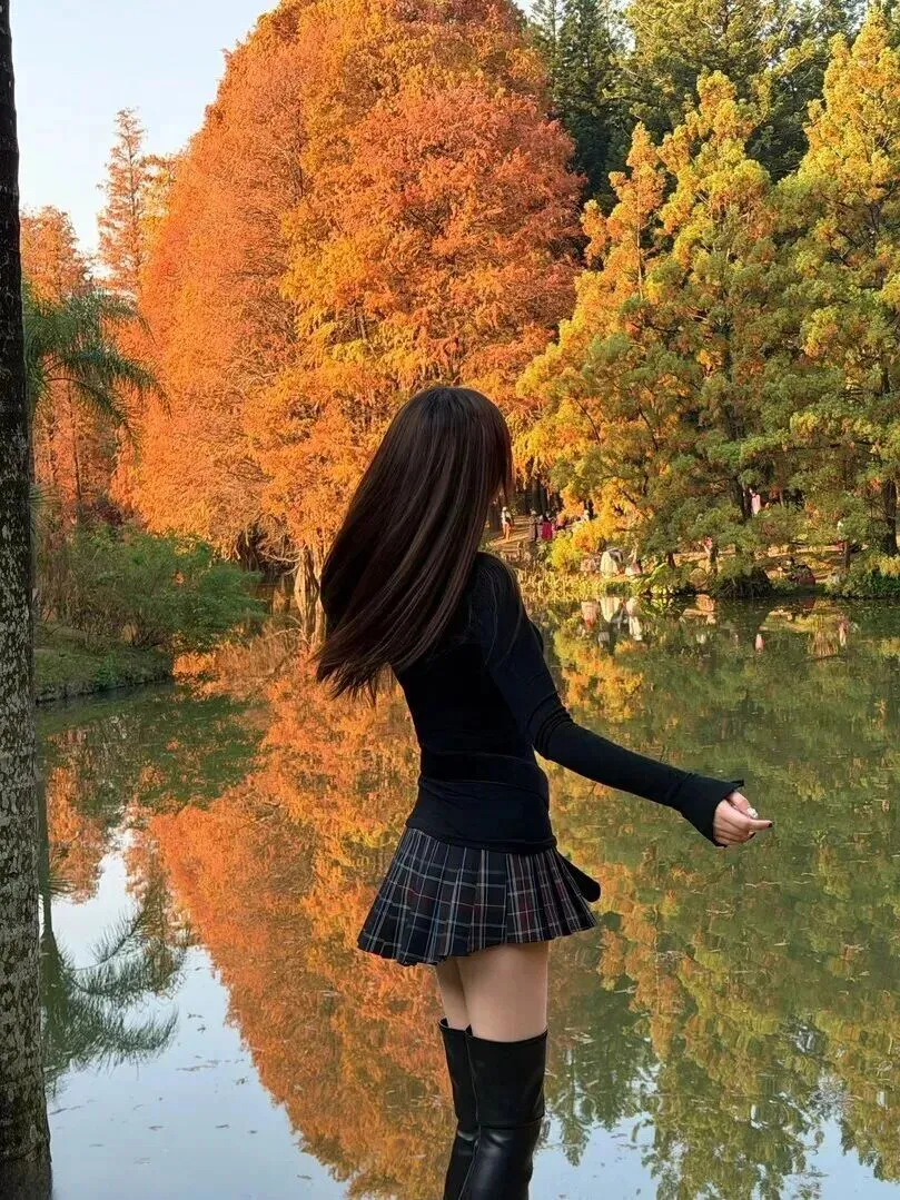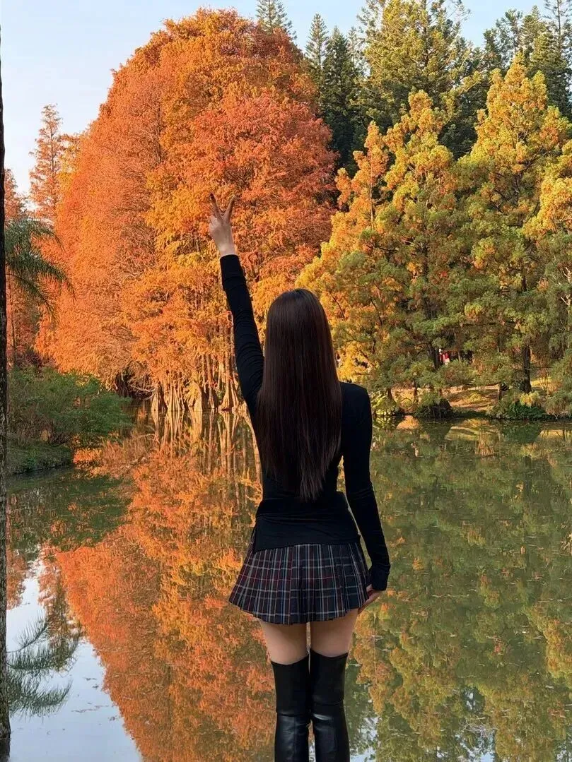 选择合适的地方拍照更重要。秋天的树林、湖边、草地是宝地。黄昏时分的光是金黄色的,落在身上暖洋洋的。树叶五颜六色,水面平静如镜,二者相结合的完美配搭。站在里面,你就成了画中人。