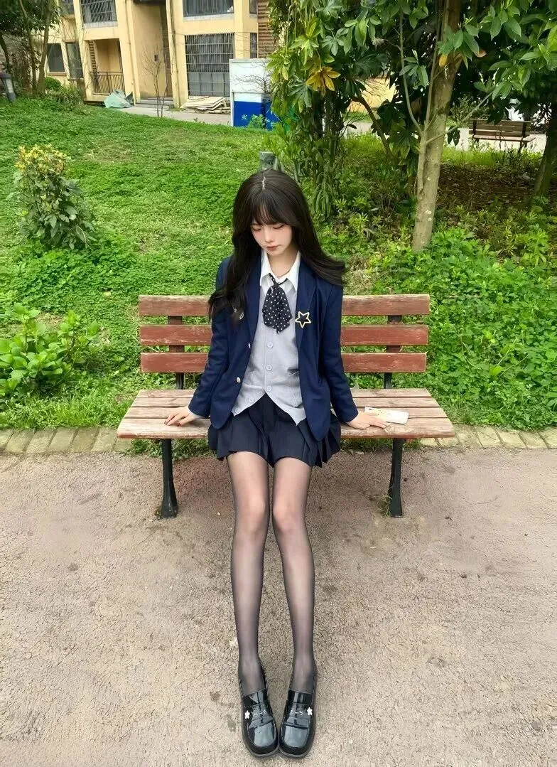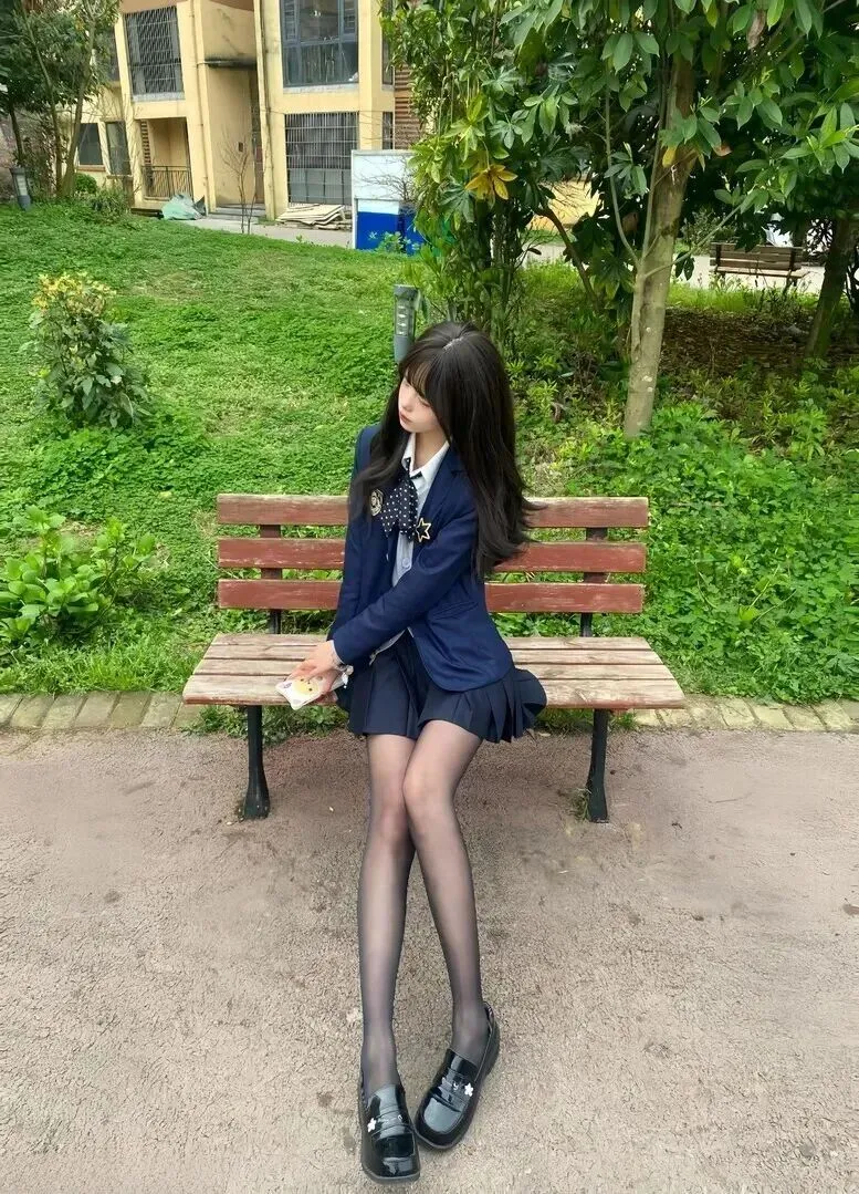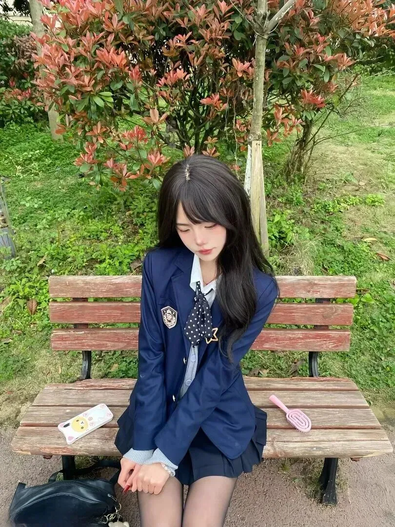 在阳光正好照耀的时候,在小区长椅旁有一位叫做安安的女孩静坐在那里的地方。藏蓝色制服外套+白衬衣,领子平整整。低头地拿着自己的卡通小玩具,镜片后面眼珠微微晃动。风一吹,黑色长发微动,一副认真之态很能打动人。穿着JK制服的她并没有刻意地表现出来,而是自然地走入了人们的眼帘之中,就像是放学后那些等待人群一样。